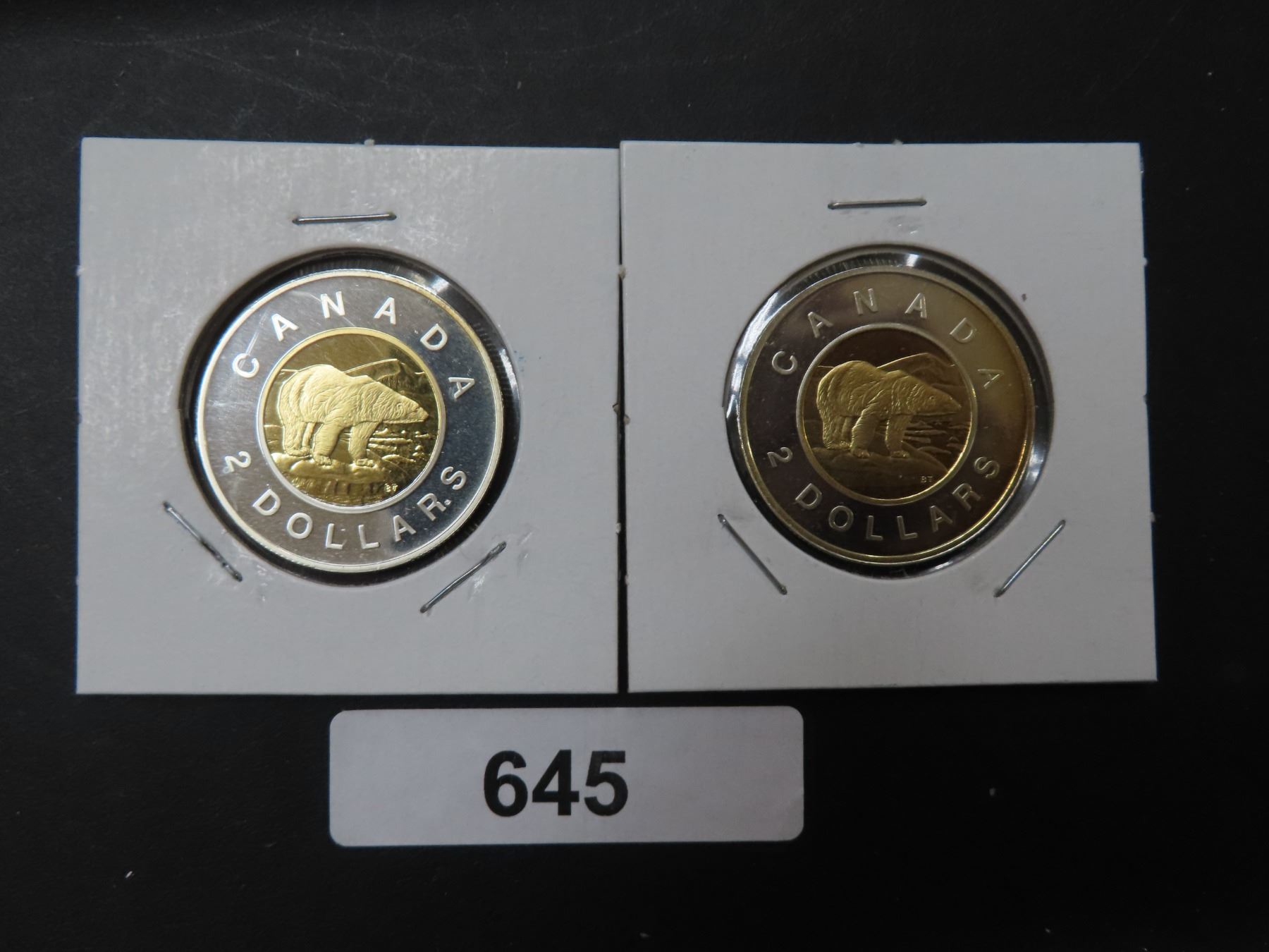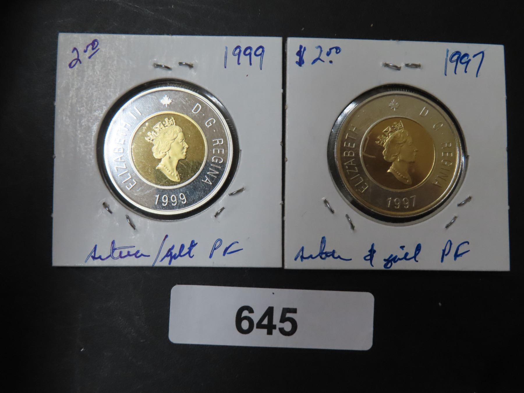 2 - CanadIan Toonies - 24kt Gold Inlay - Sterling Silver Proof Coins 1997,1999