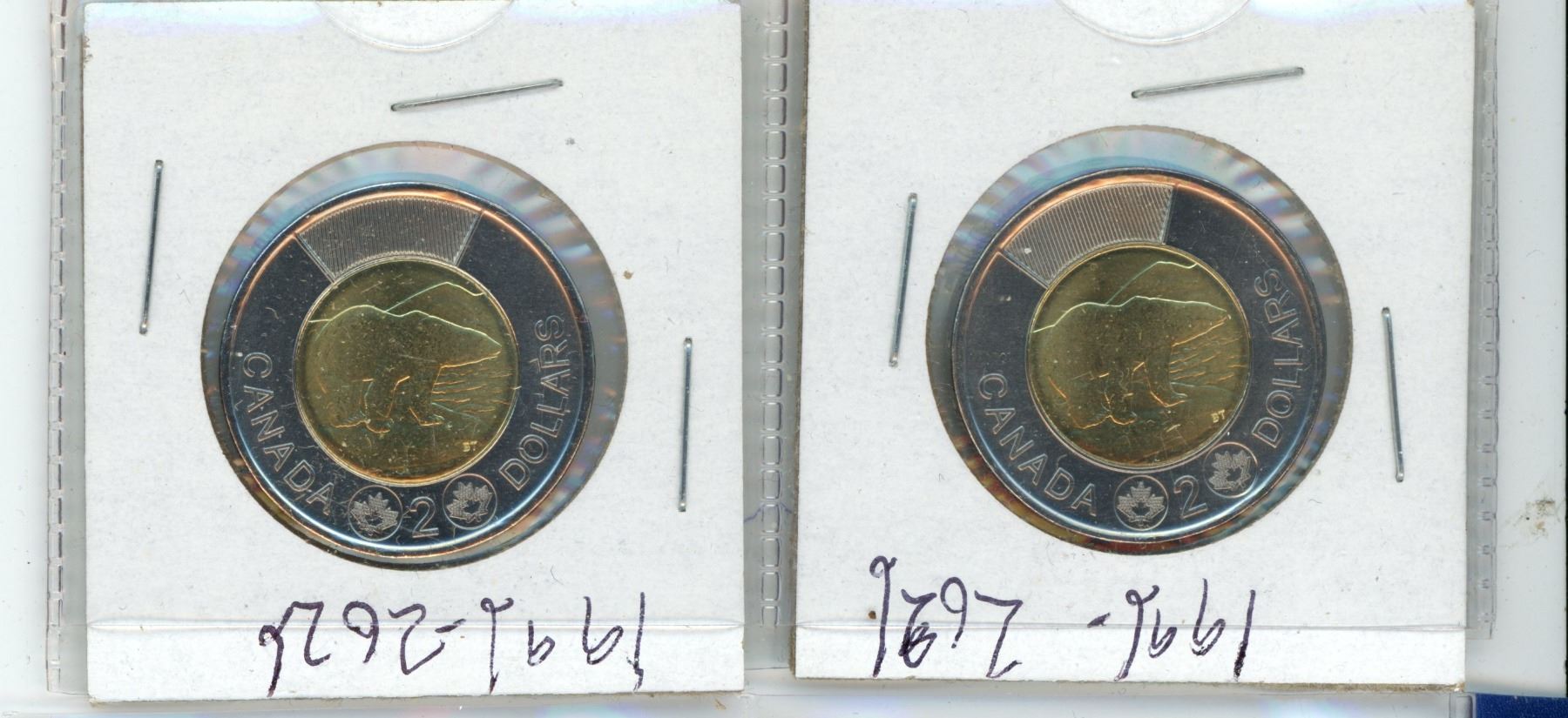 (2) Canadian 2 Dollar Coins 1996-2026