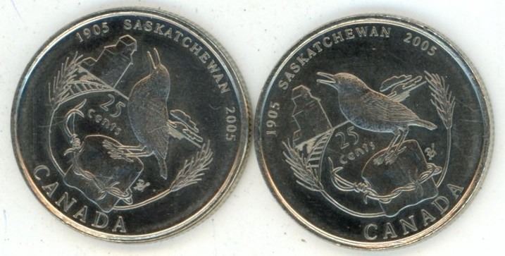 (2) Canadian 25 Cent Coins 2005 Celebrating 100th Anniversary of Saskatchewan