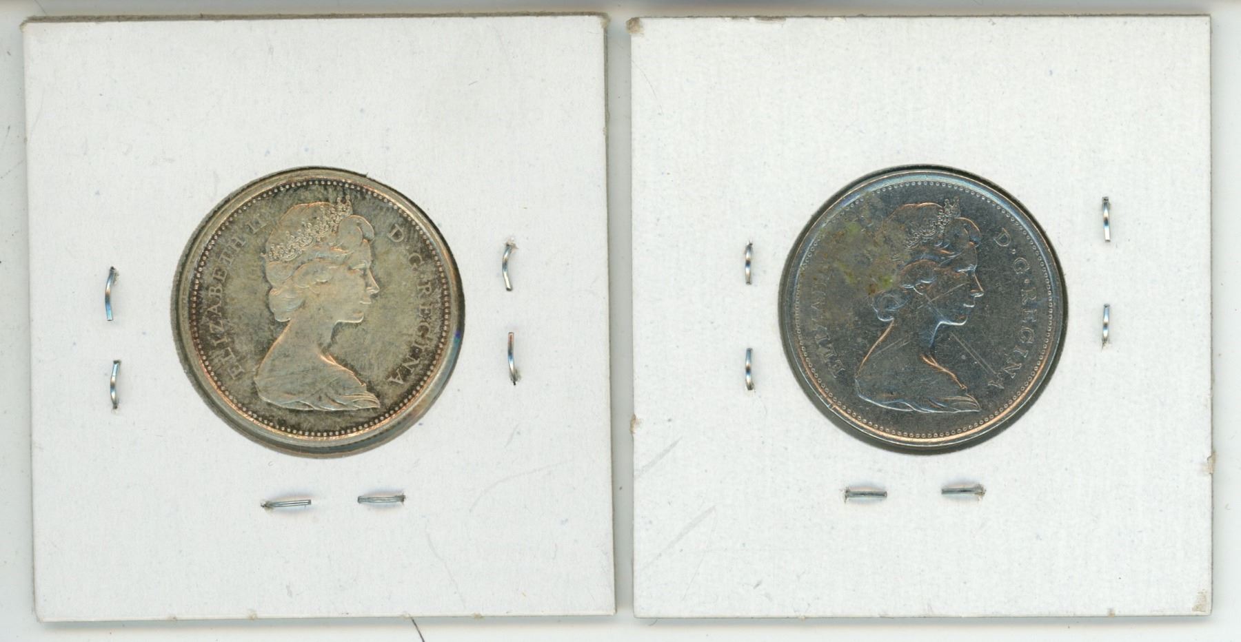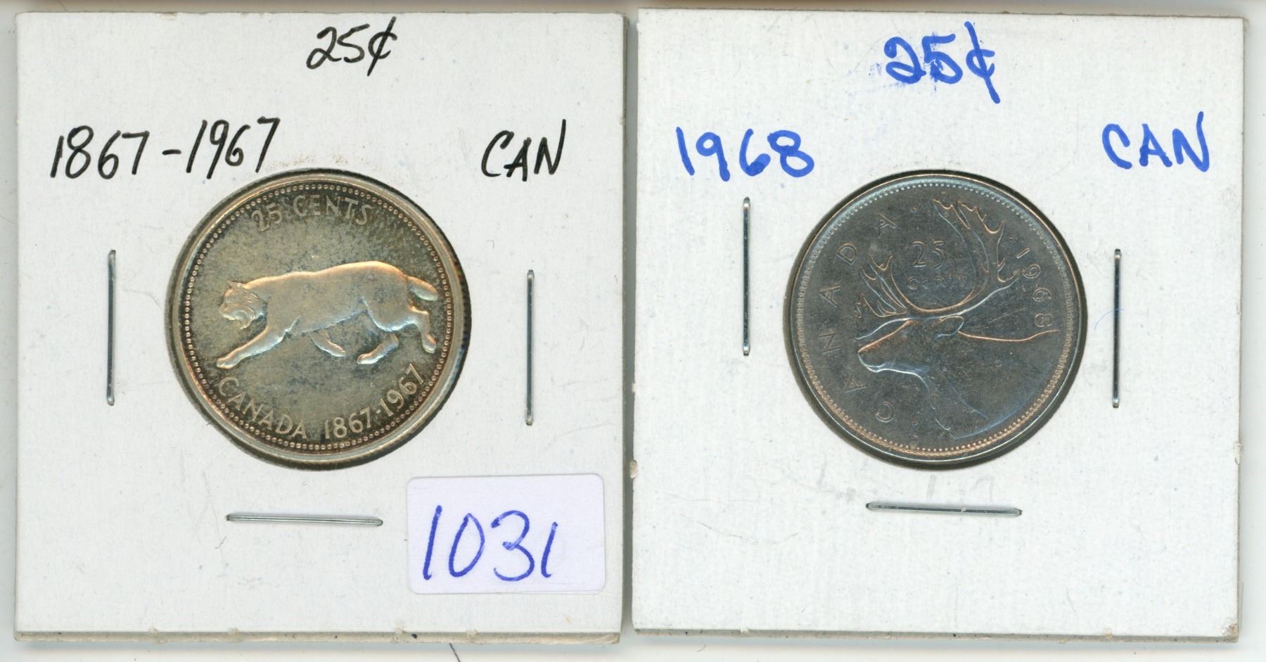 2 Canadian 25 cent coins - 1967 Silver lynx & 1968