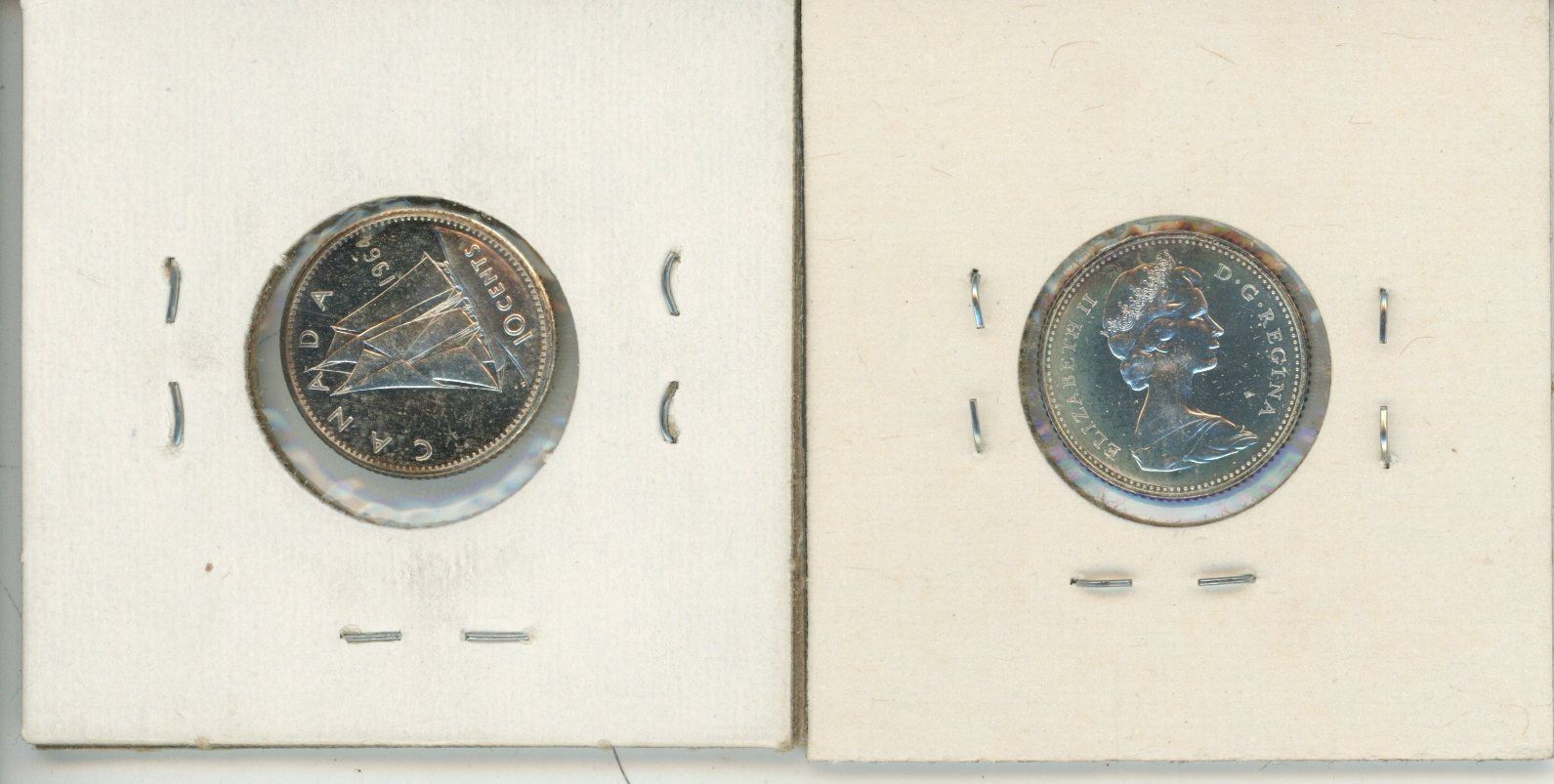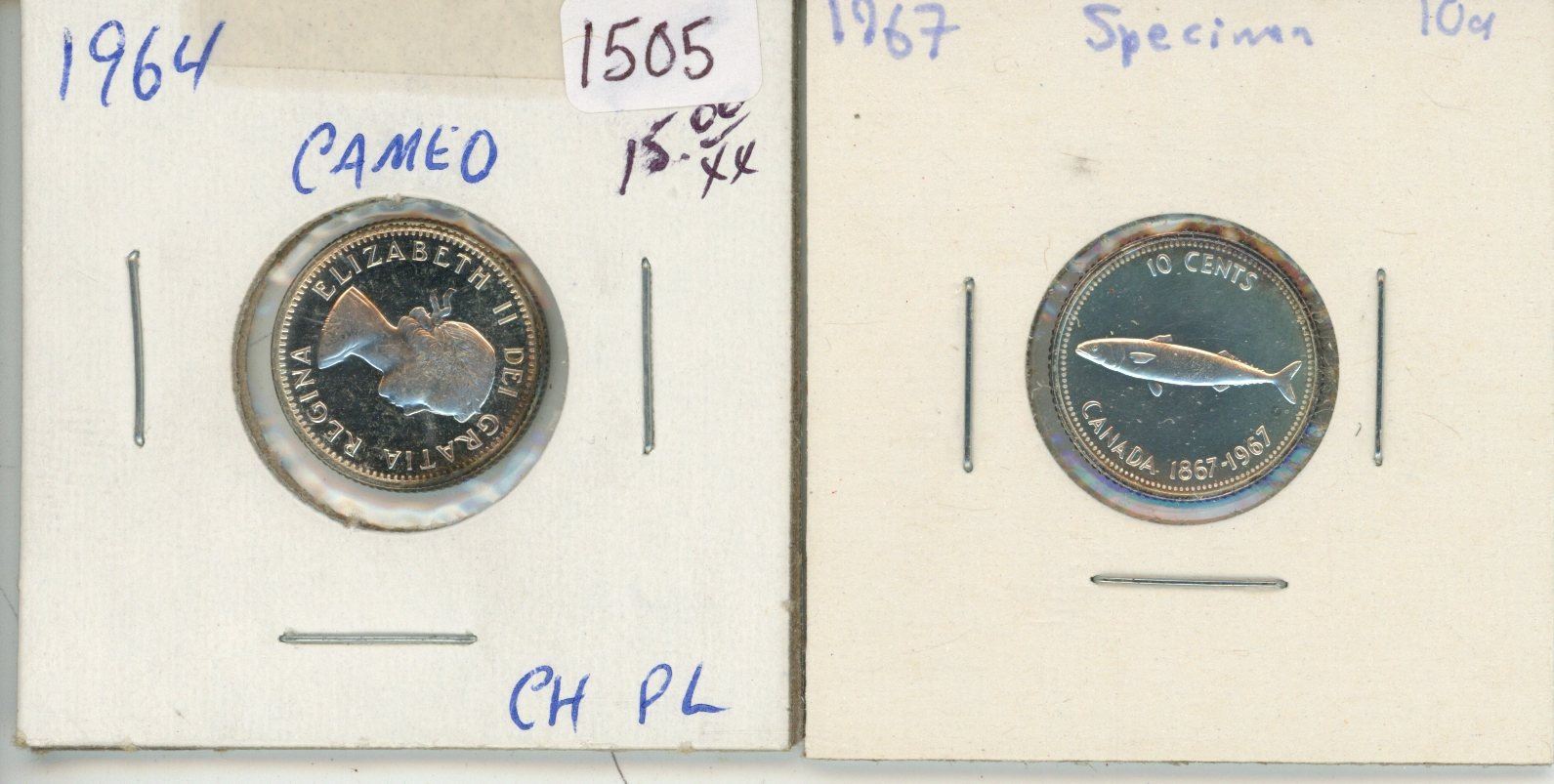 2 Canadian silver 10 cent coins - 1964 & 1967