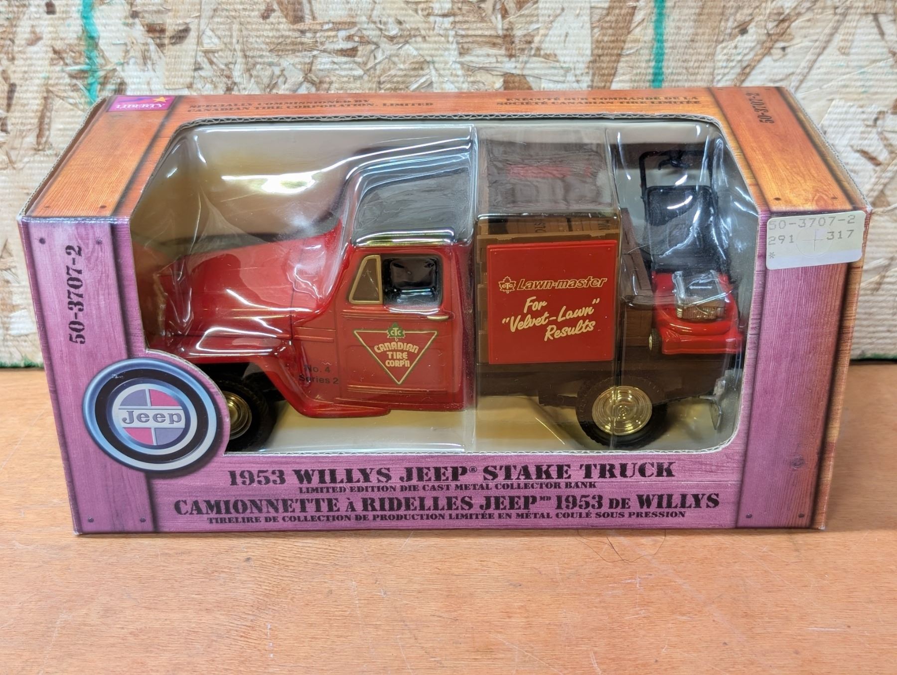 (2) Canadian tire branded Vehicles (1953 Willys Jeep Stake truck/ 40s Ford Camion) w/ Original Package