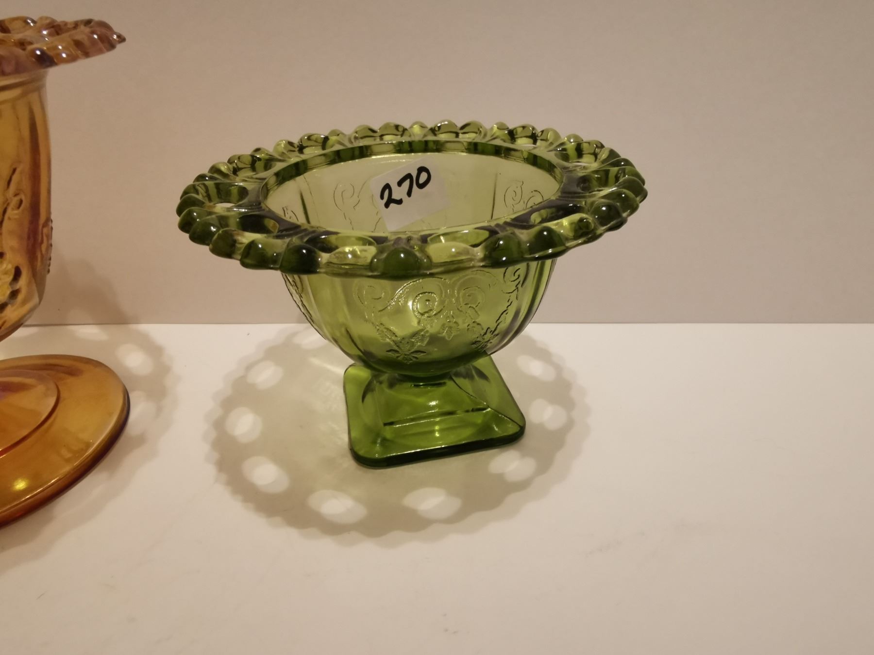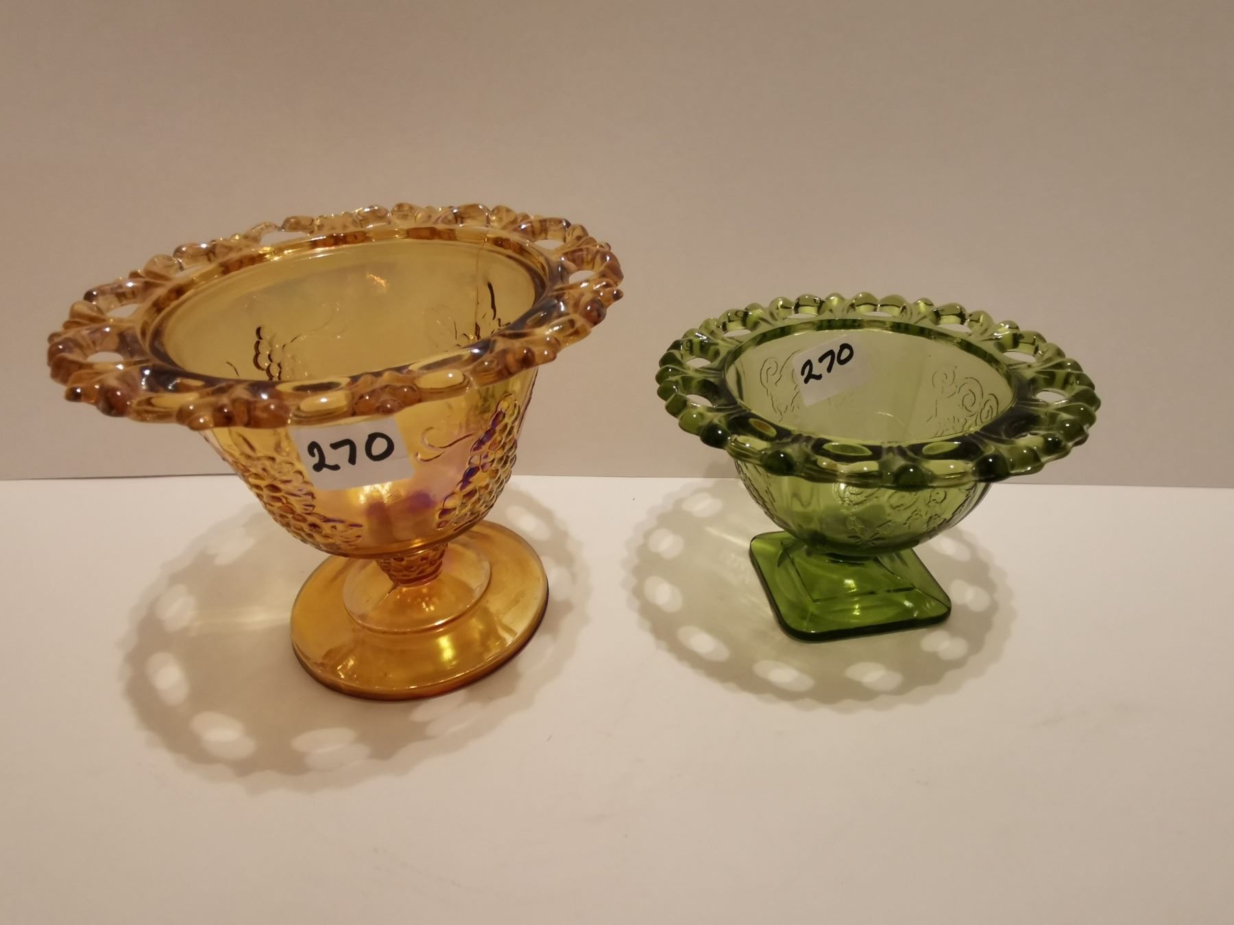 2 Candy Dishes Yellow 5.5x5" High Green 5x3" High