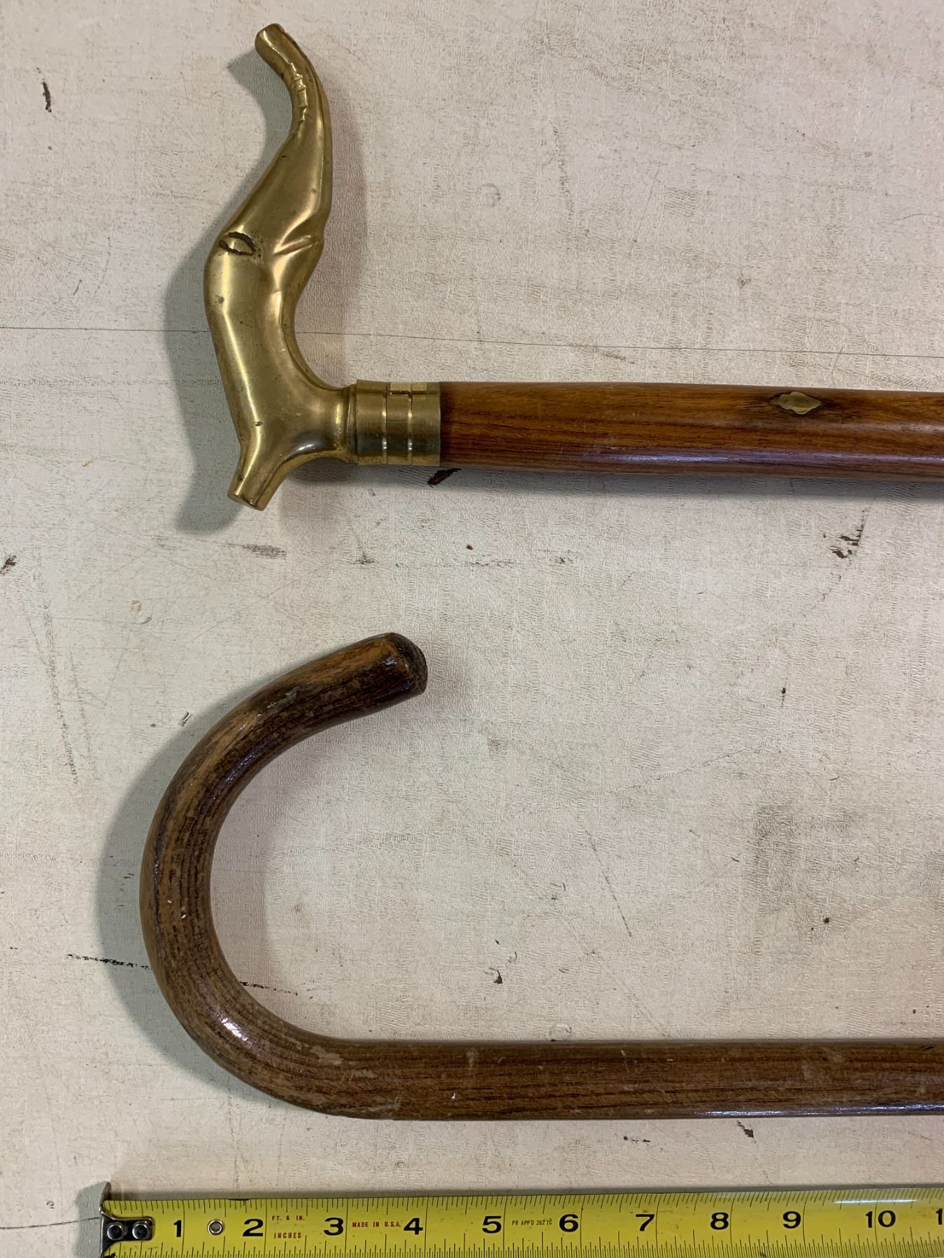 2- Canes, One Brass Handled Elephant Head, One Wood