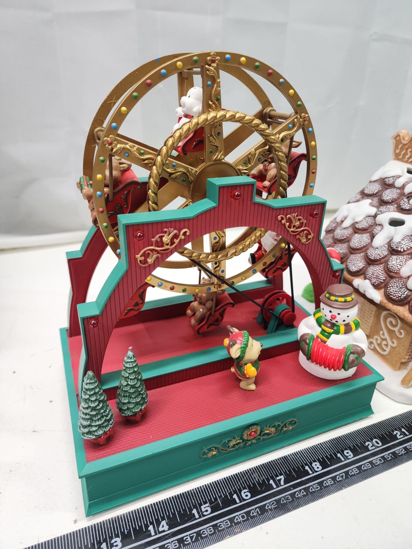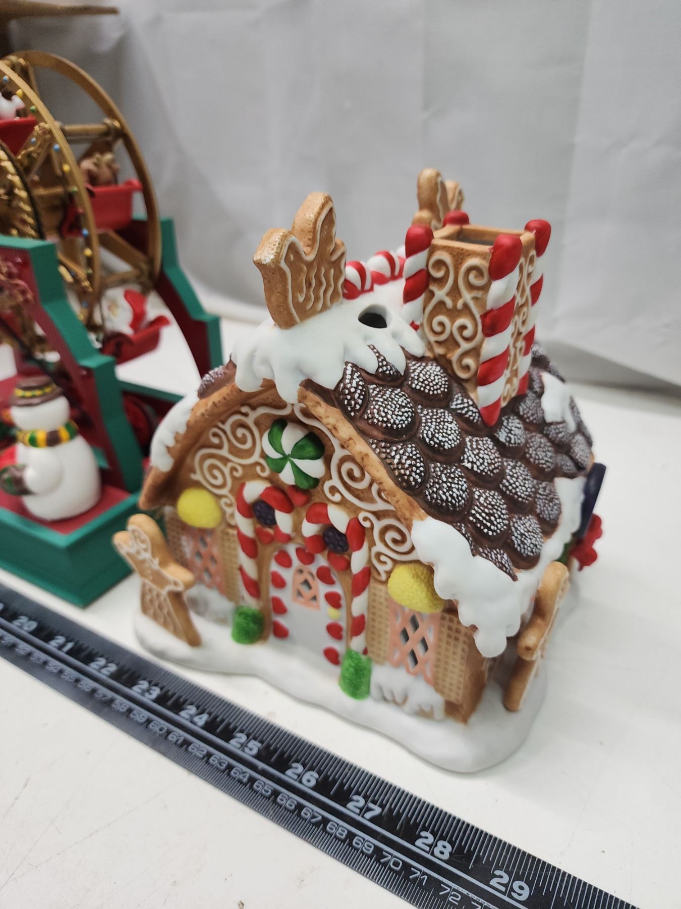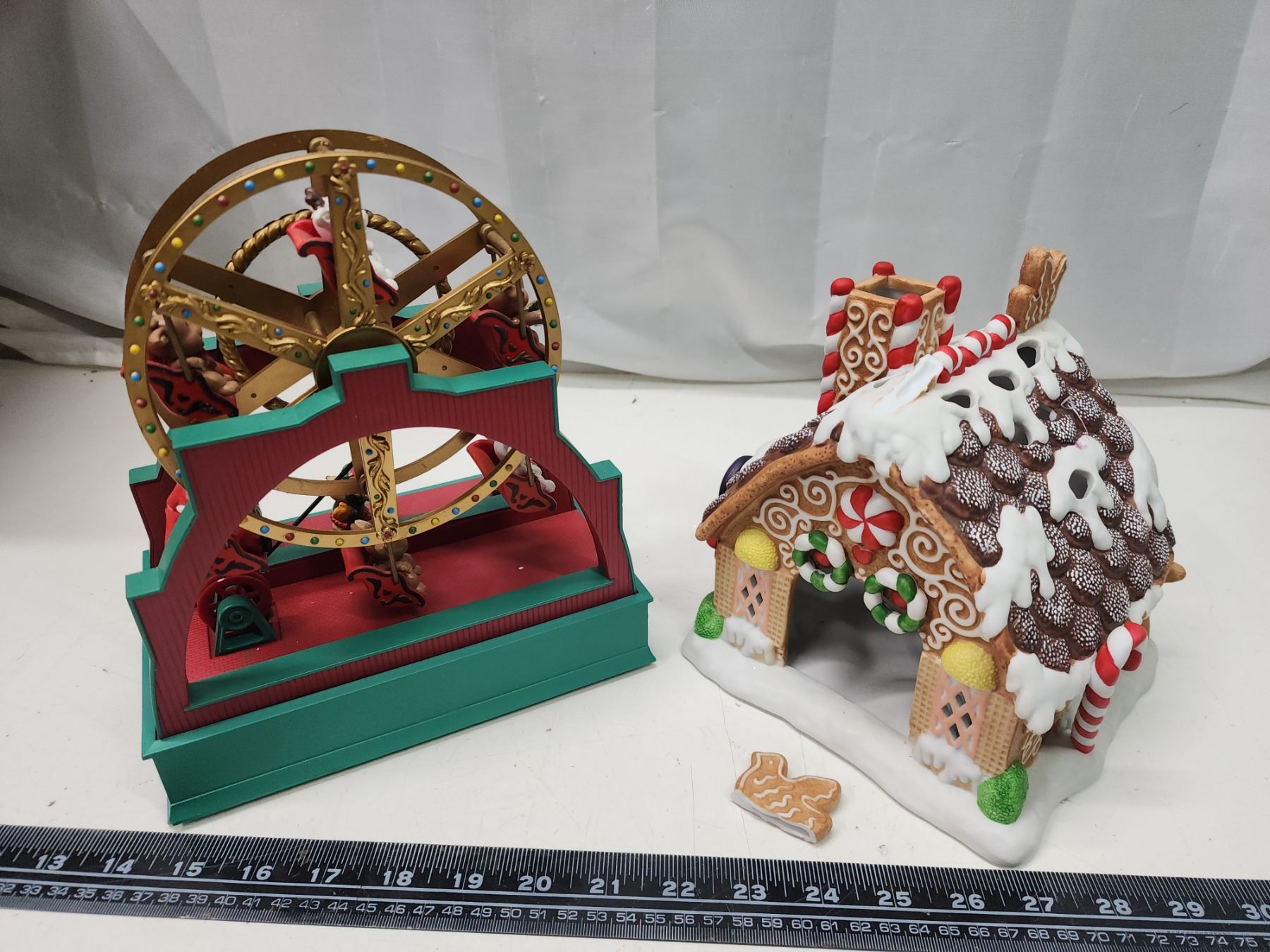 2 Christmas decorative items - Ferris Wheel - needs batts & Gingerbread house