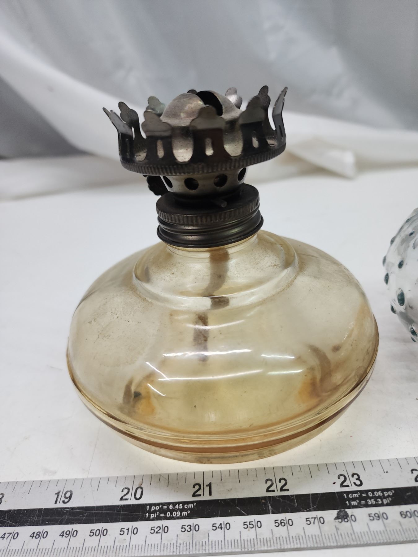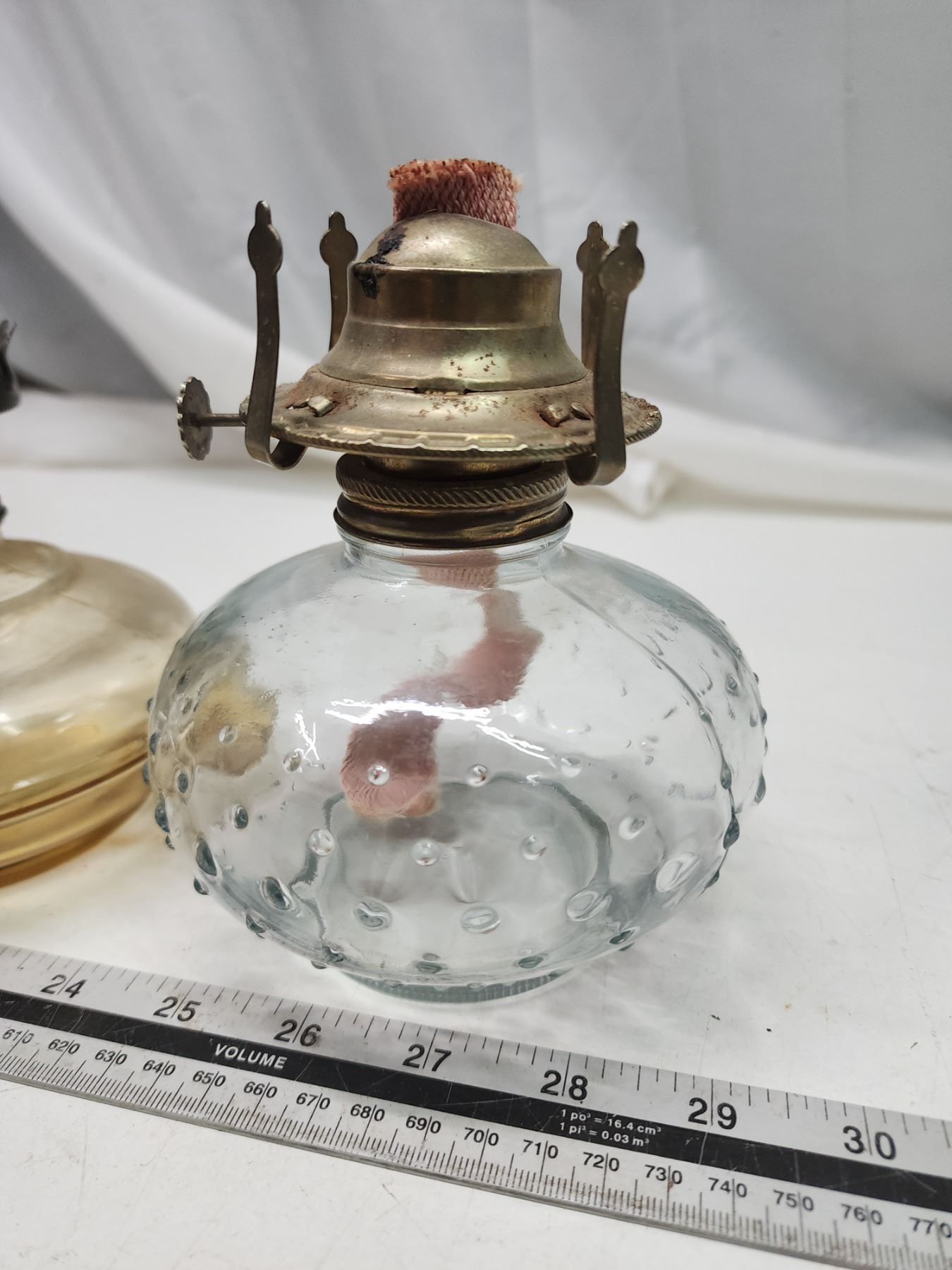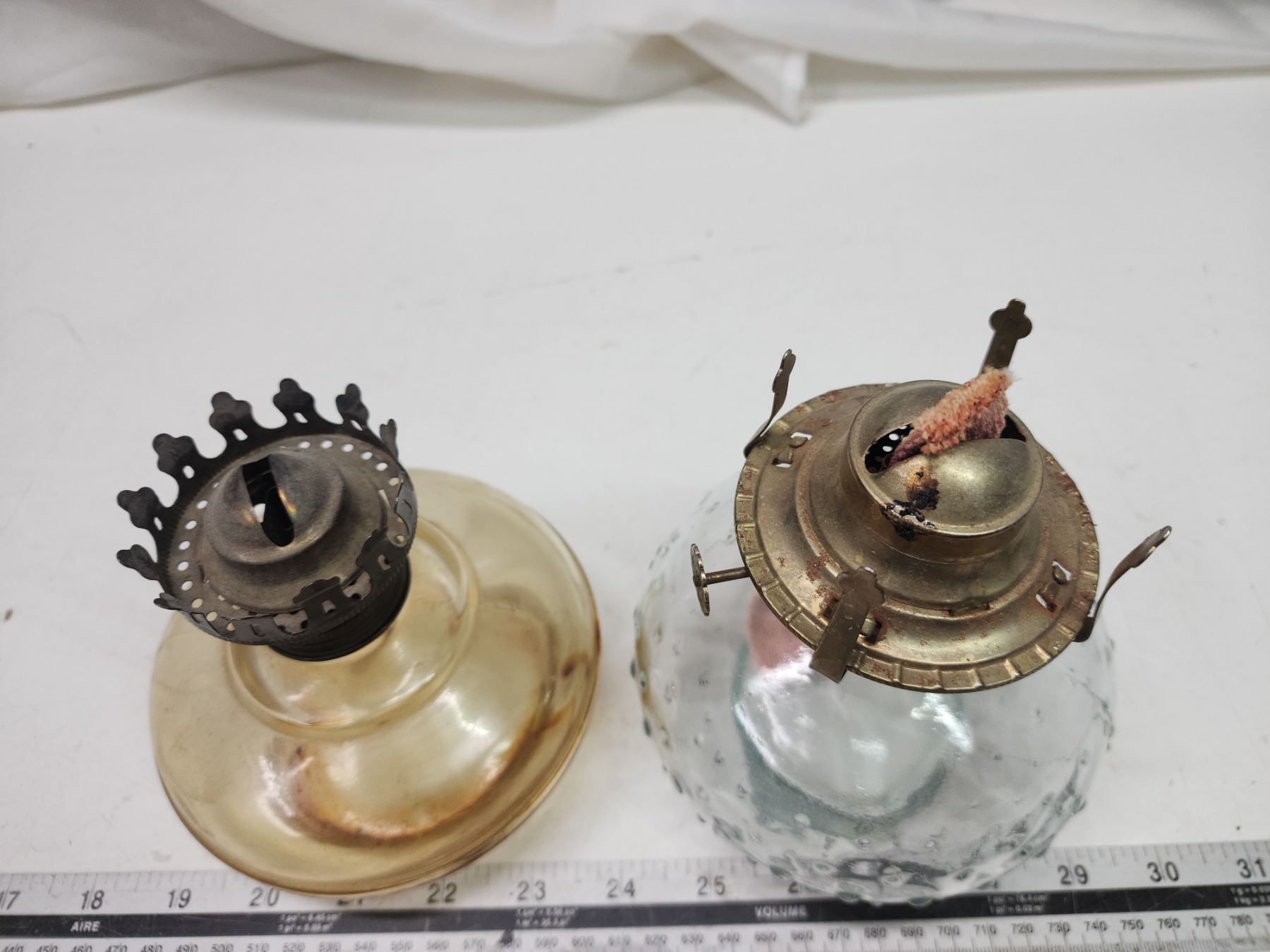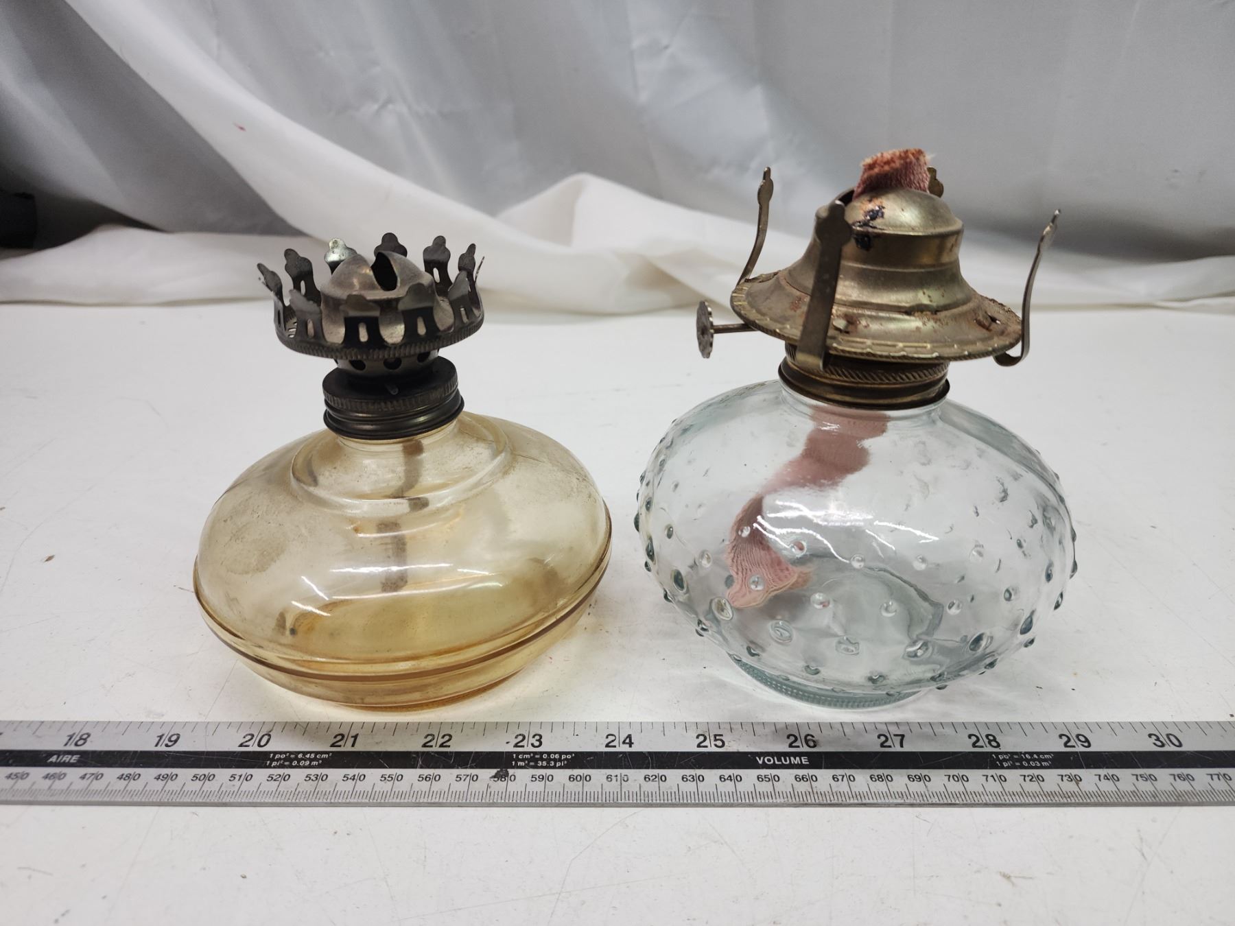 2 Coal oil lamps, no chimney's - 1 is smoke colored