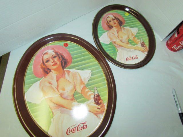 2 Coca-Cola Ladies trays 13x10.5 & 17x14