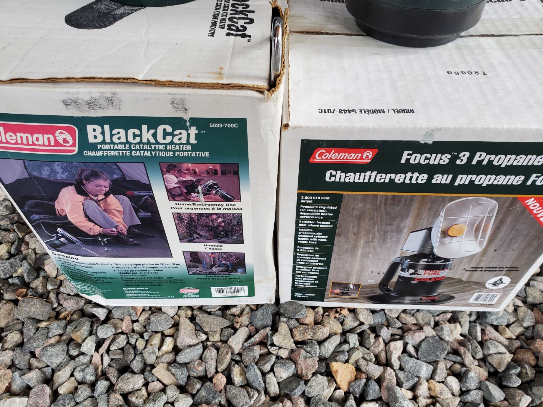 2 Coleman New Never Used Catalytic Heaters + 2 Never Used Propane Tanks