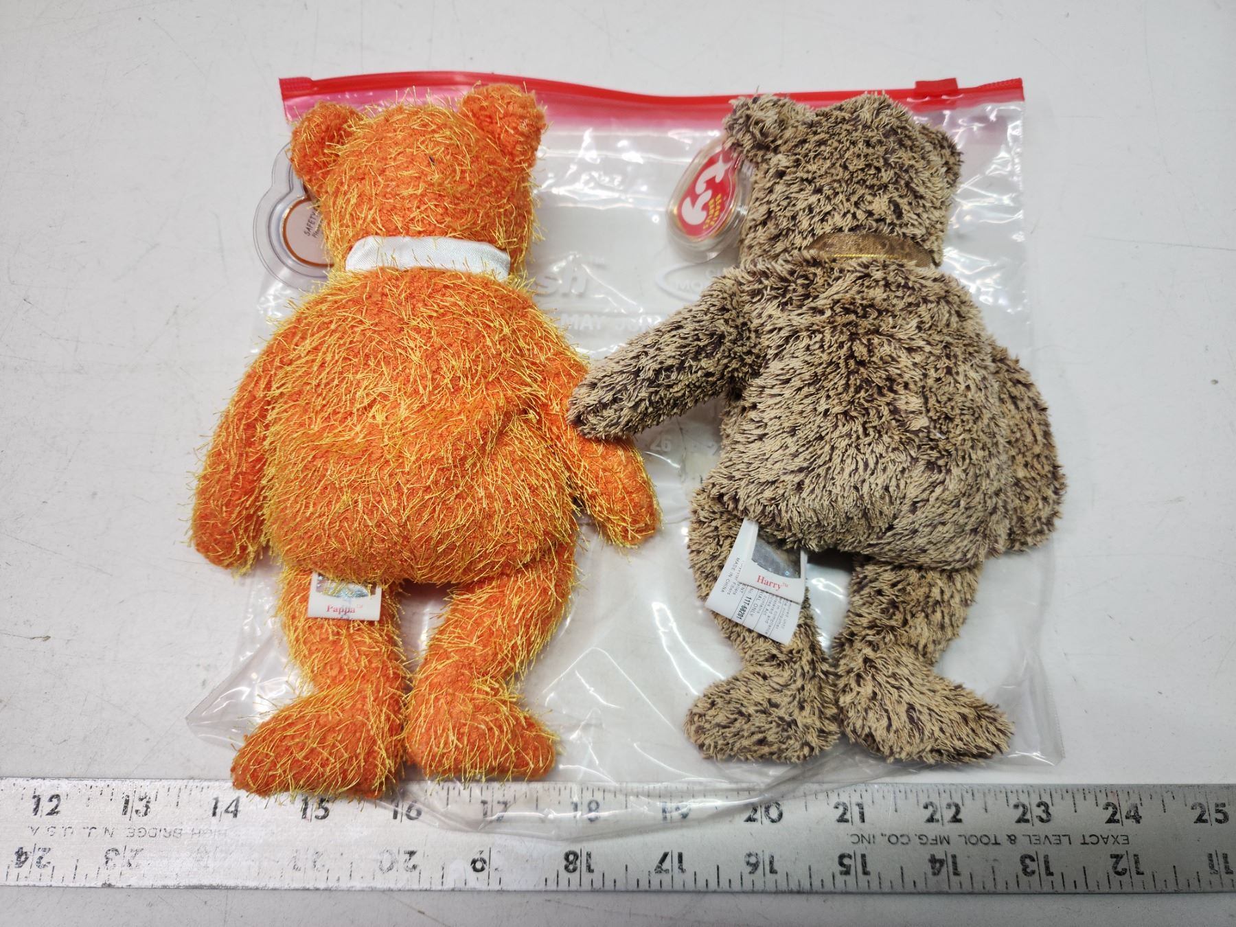 2 Collectible bears, ty beanie babies - "Pappa" &"Harry" - in bag, like new