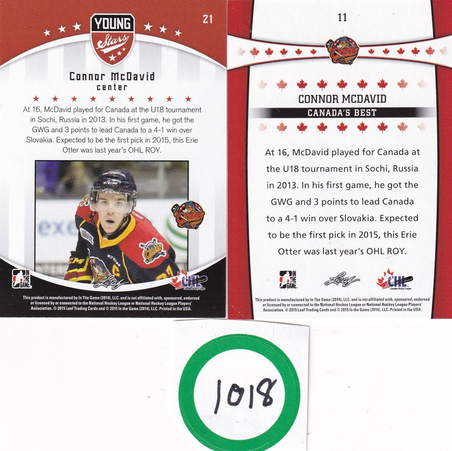 2 Connor McDavid Erie Otters Junior cards