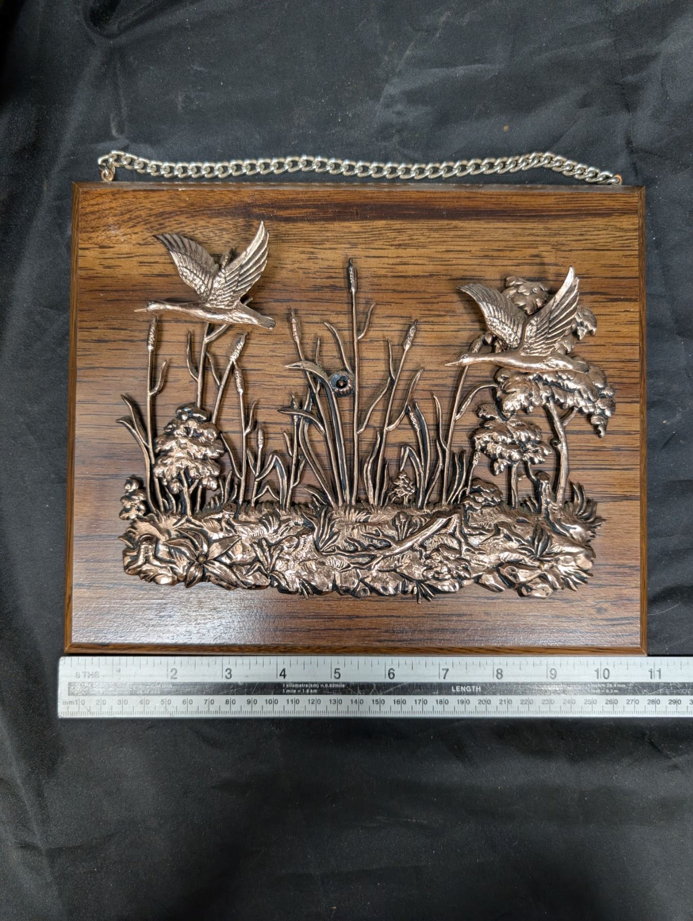 (2) Copper wall hangings (1) Stamped Maison fisher