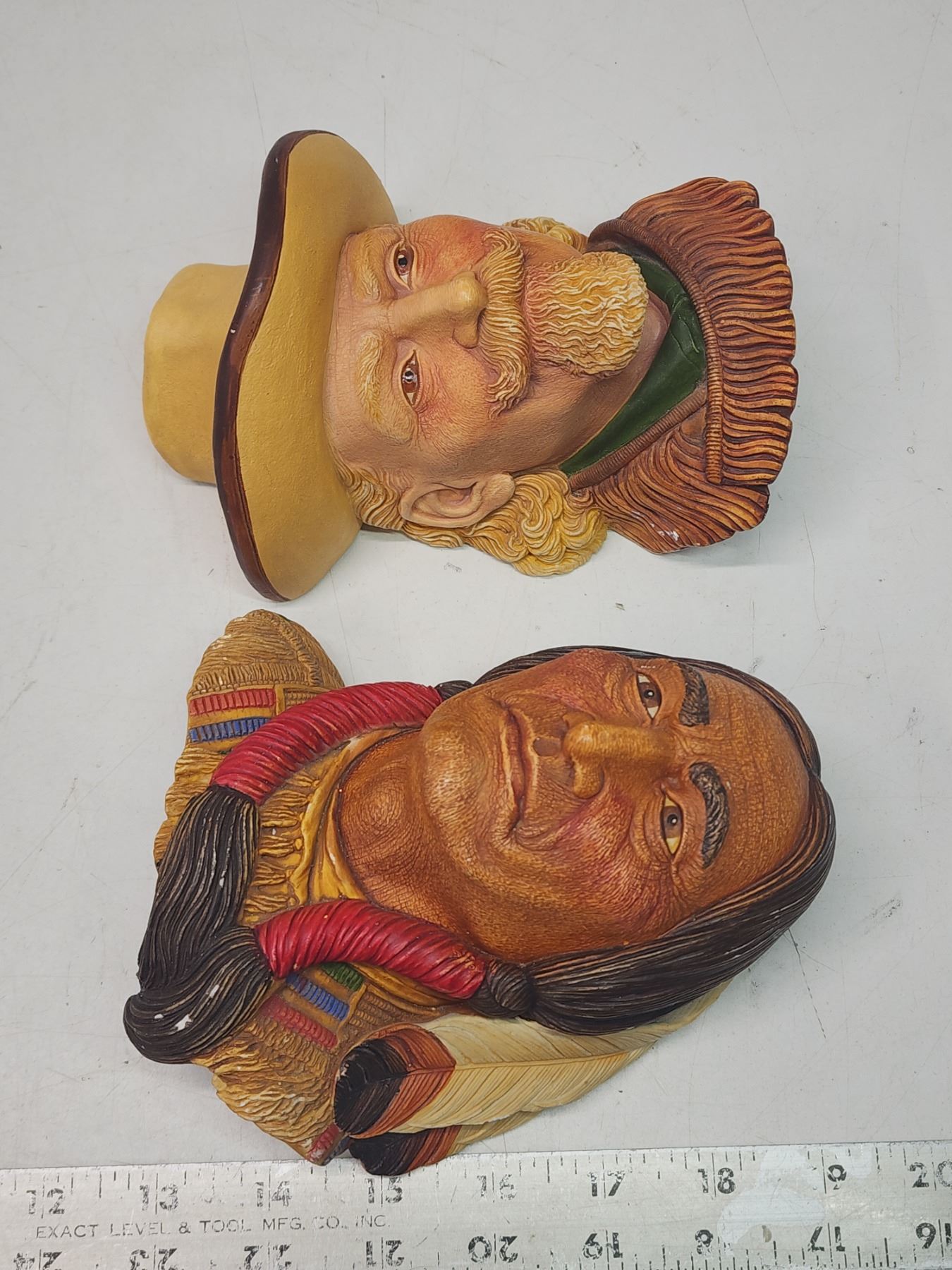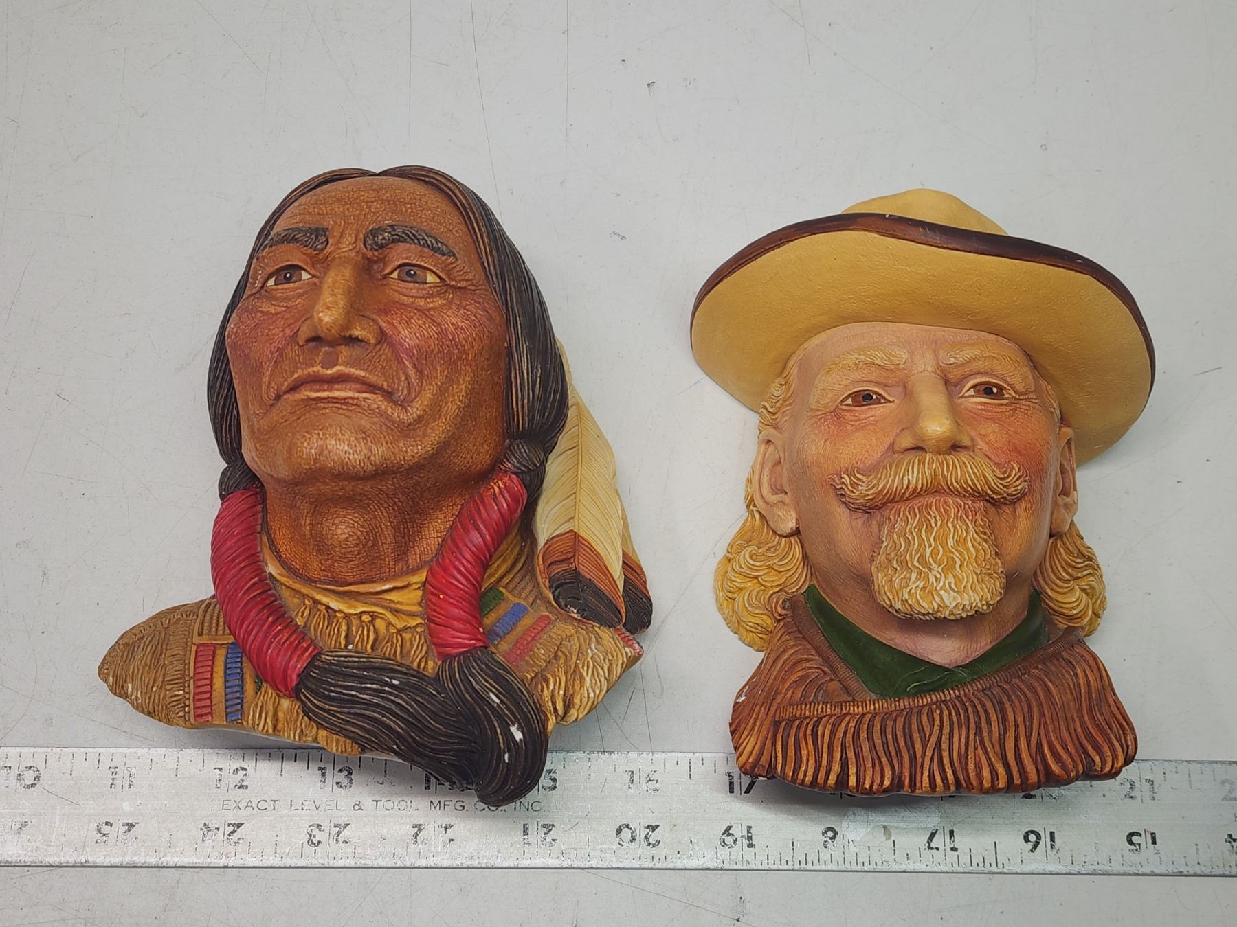 2 Decorative figure heads - Sitting Bull & Buffalo bill - Legend products, J. Wright