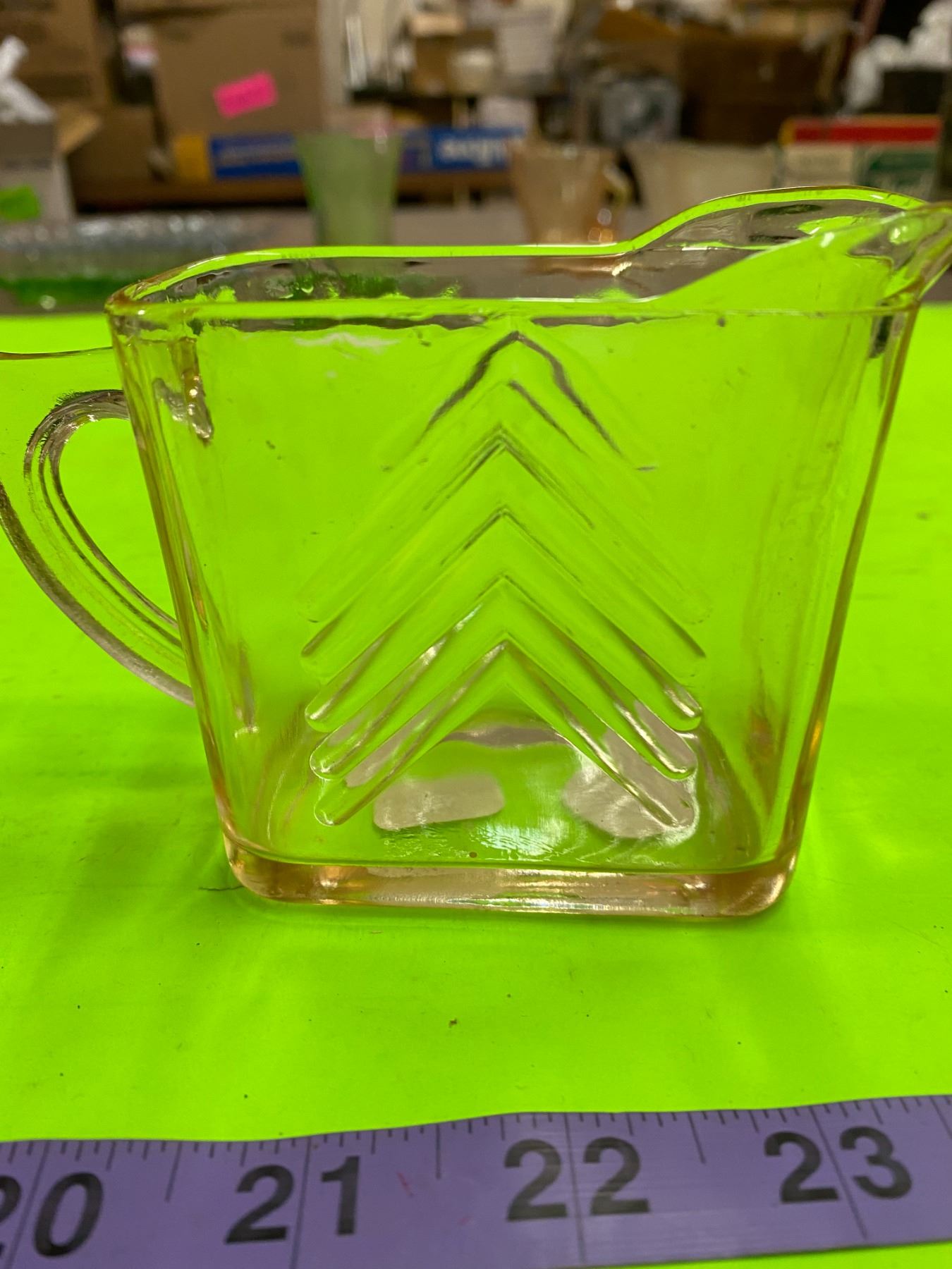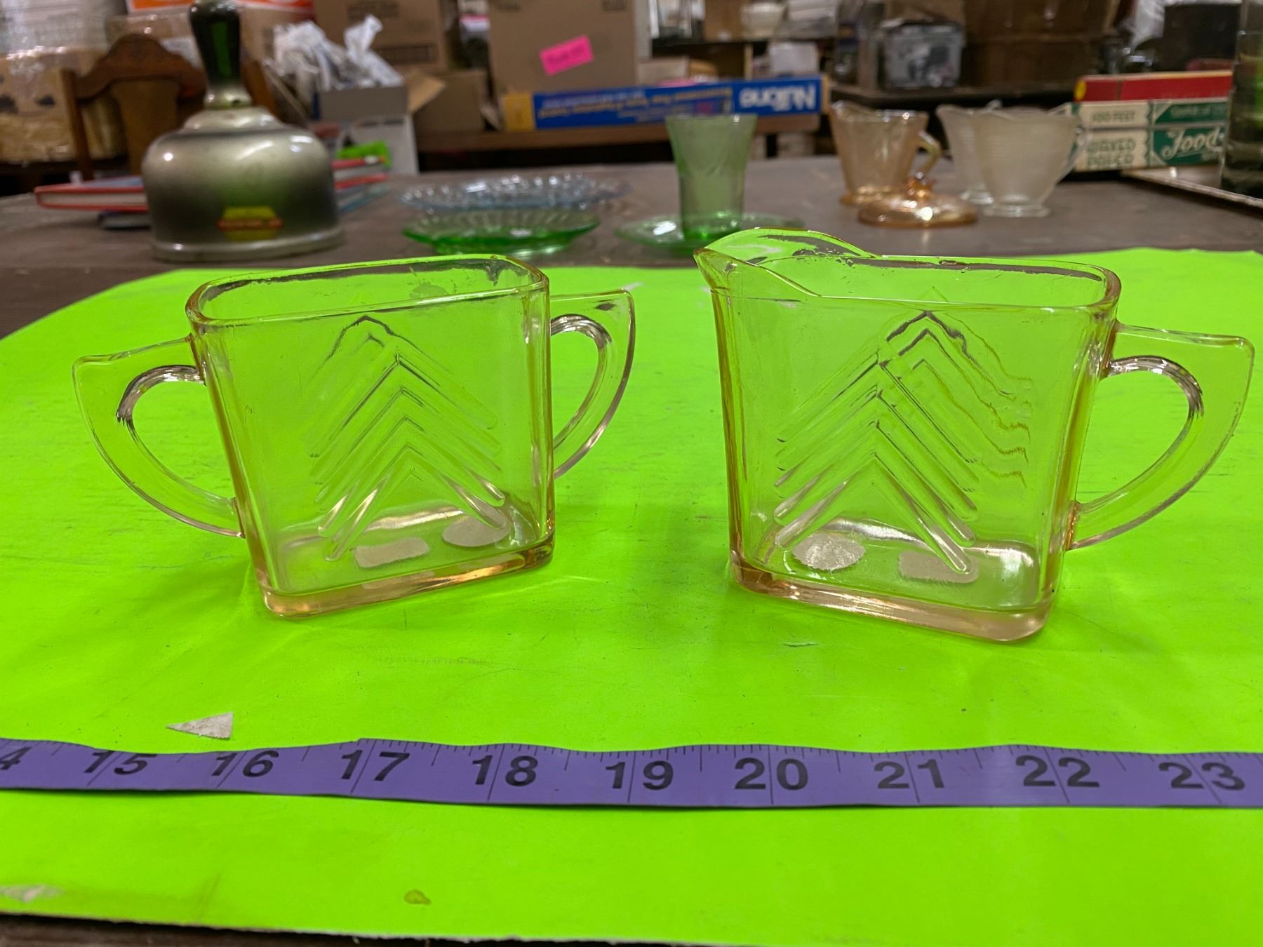 2 Depression Glass Creamers ( Pink Chevron)