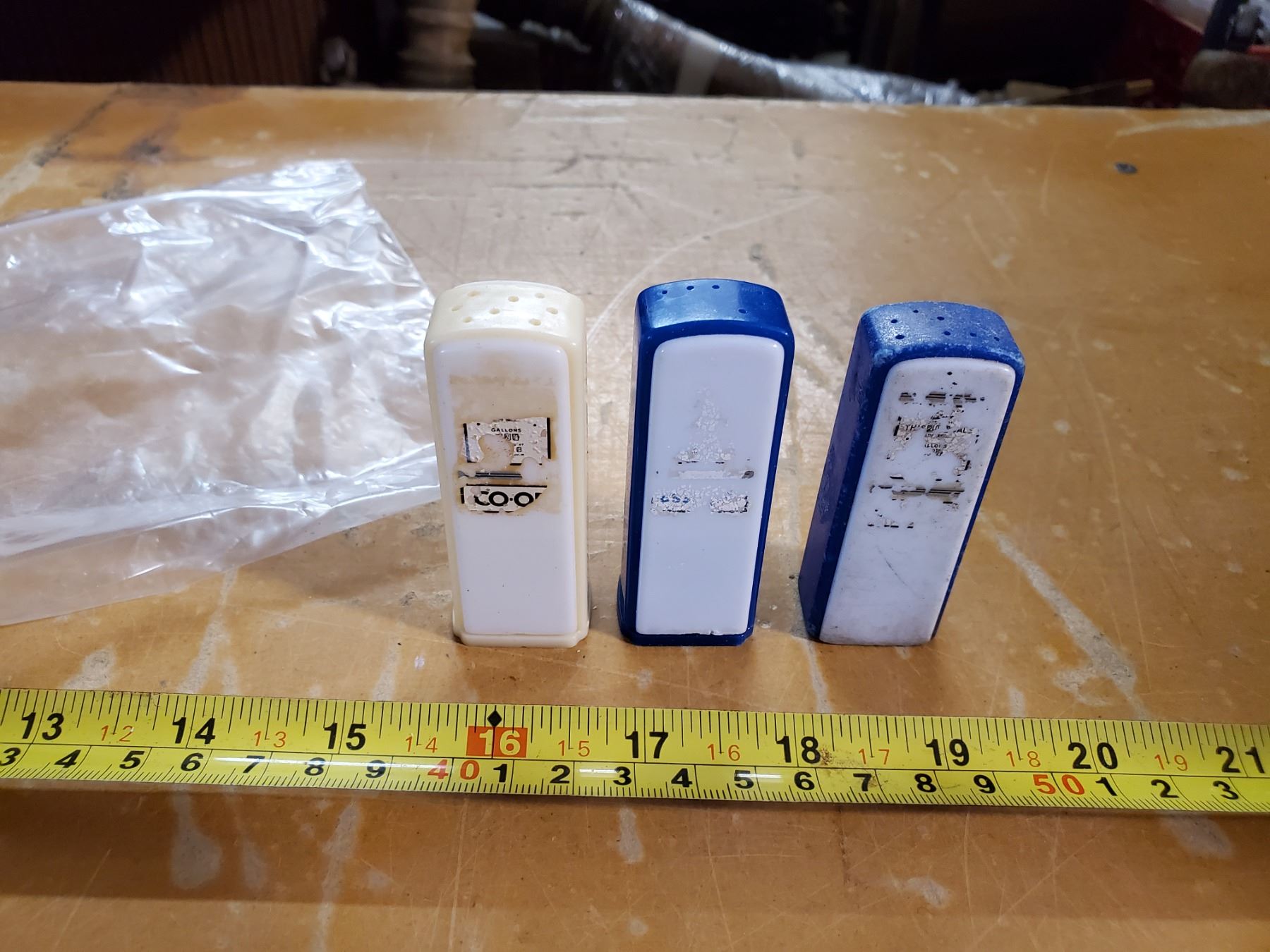 2 ESSO PEPPER SHAKERS (ONE LID MISSING) & 1 CO-OP SALT