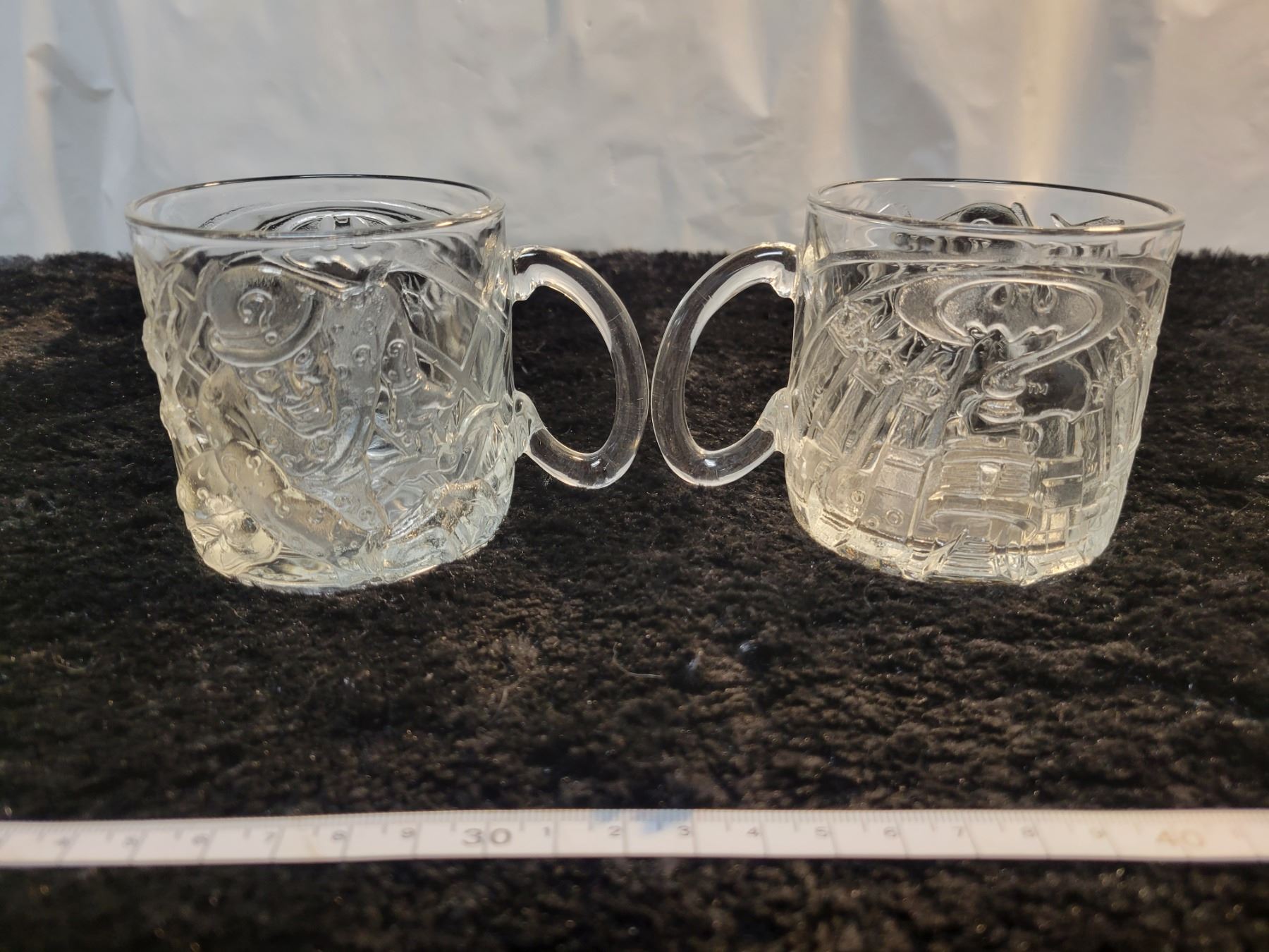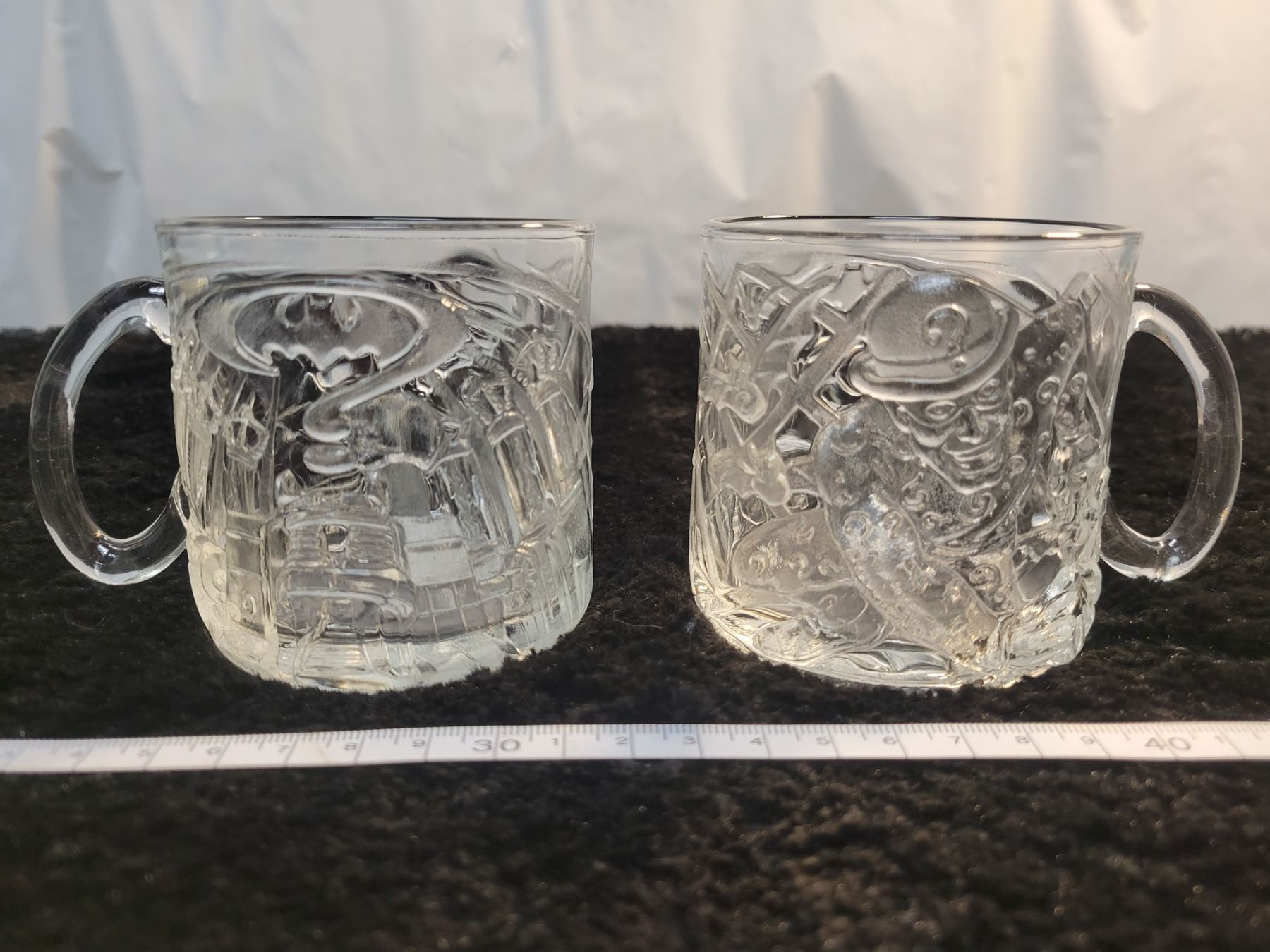 2 Excellent condition glass McDonald's "Batman series" mugs - The Riddler TM 1995 DC Comics