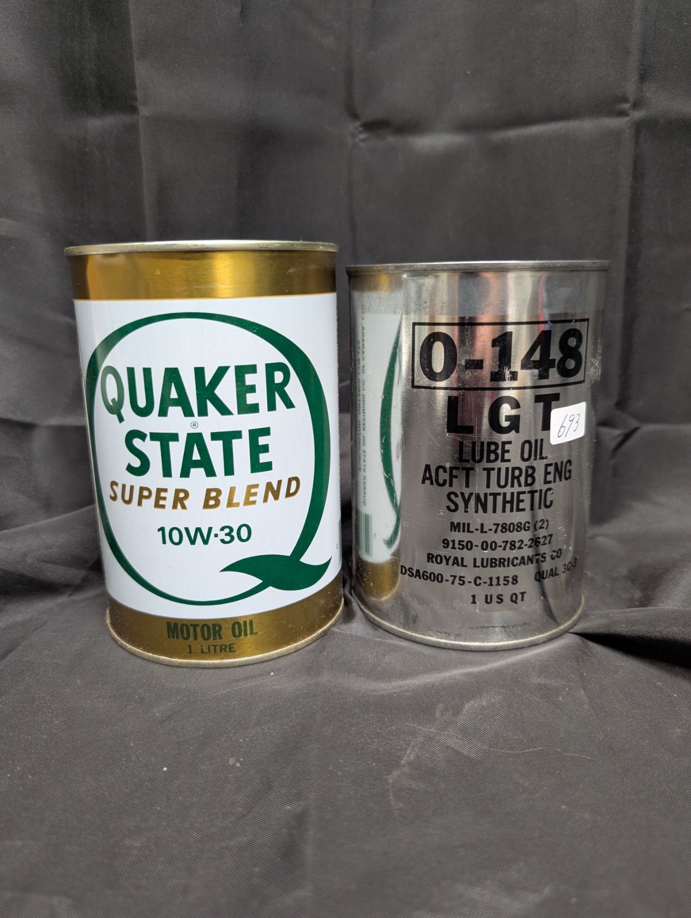(2) Full Excellent Condition Cans of Quaker State + O-148