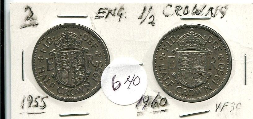 2 GREAT BRITAIN 1/2 CROWNS 1955 AND 1960 .800 SILVER
