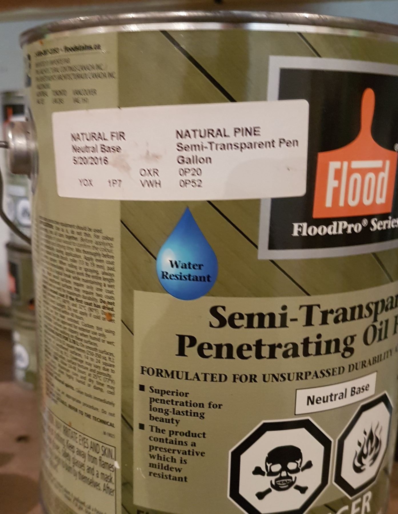 2 Gal Natural Pin Oil Finish, Stored in Heated Shop, Never frozen