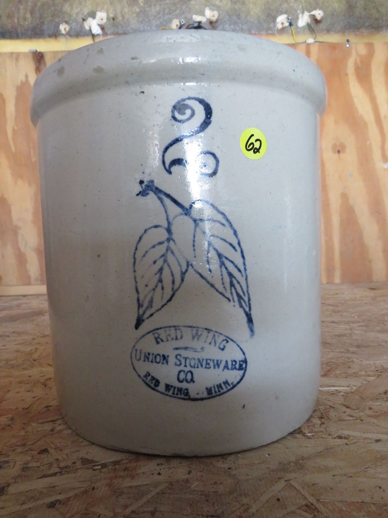 2 Gallon Red Wing Union Stoneware Birch Leaf Crock *Few Chips