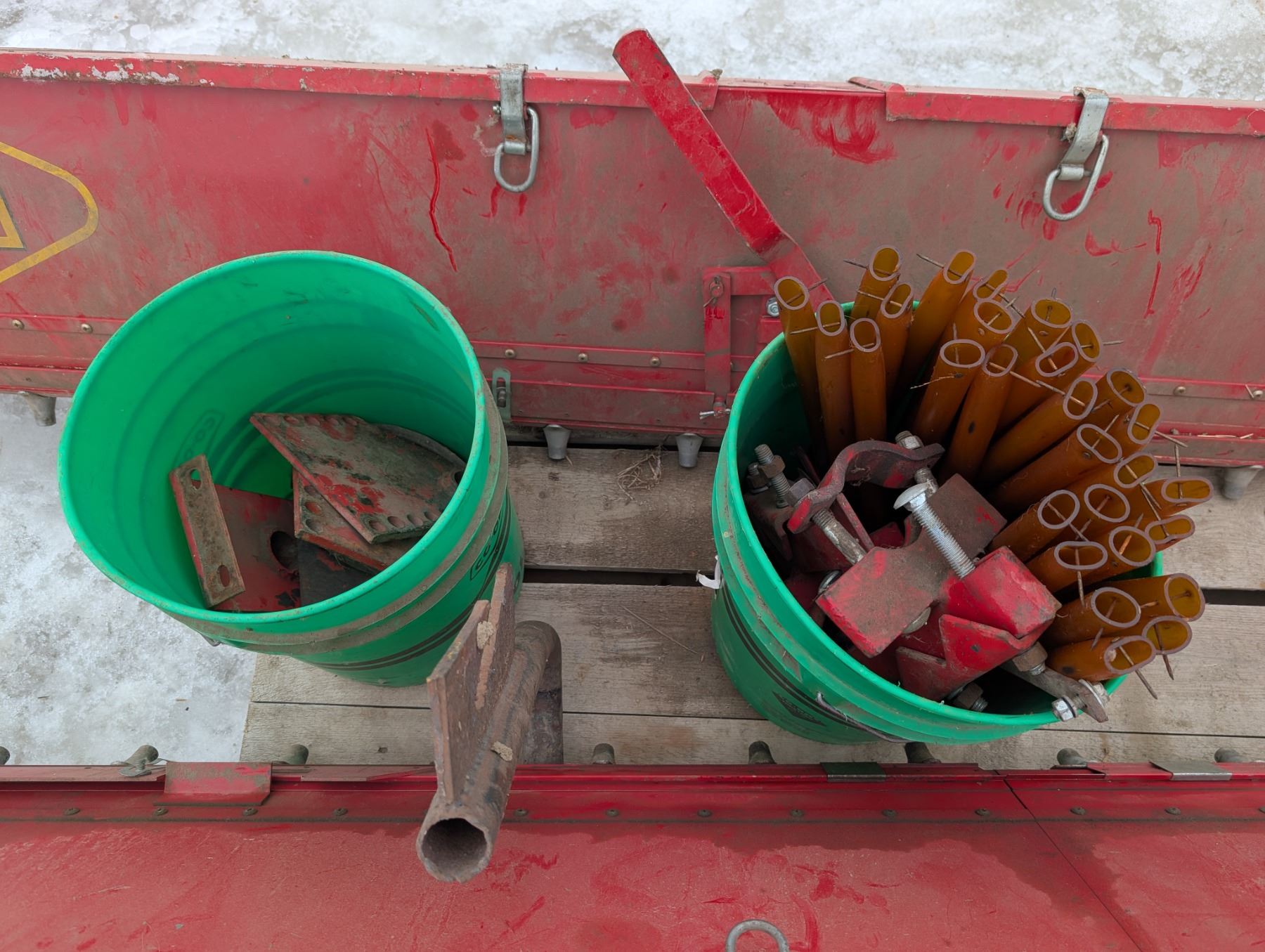 (2) Gandy Company Seeder 408-8 Ser. 709172 w/ (2) Pails of Items for Seeders As Shown