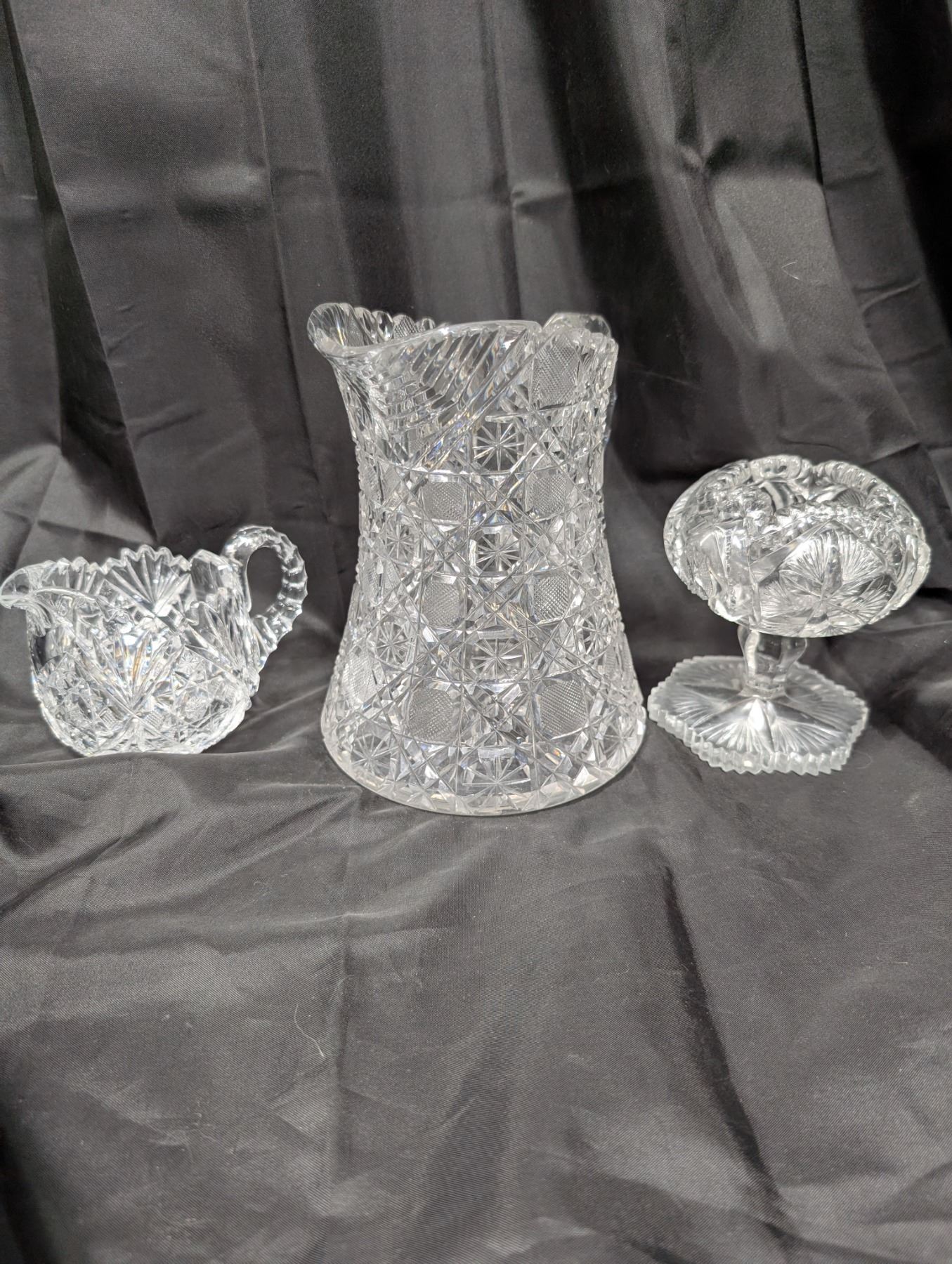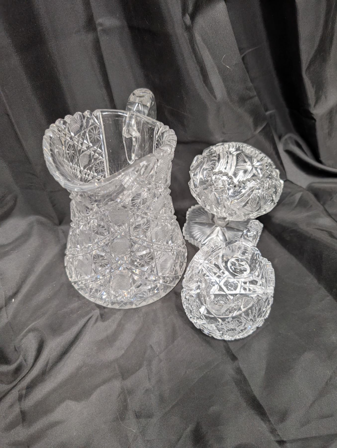 (2) Glass Pitchers (1) Glass Candy Bowl