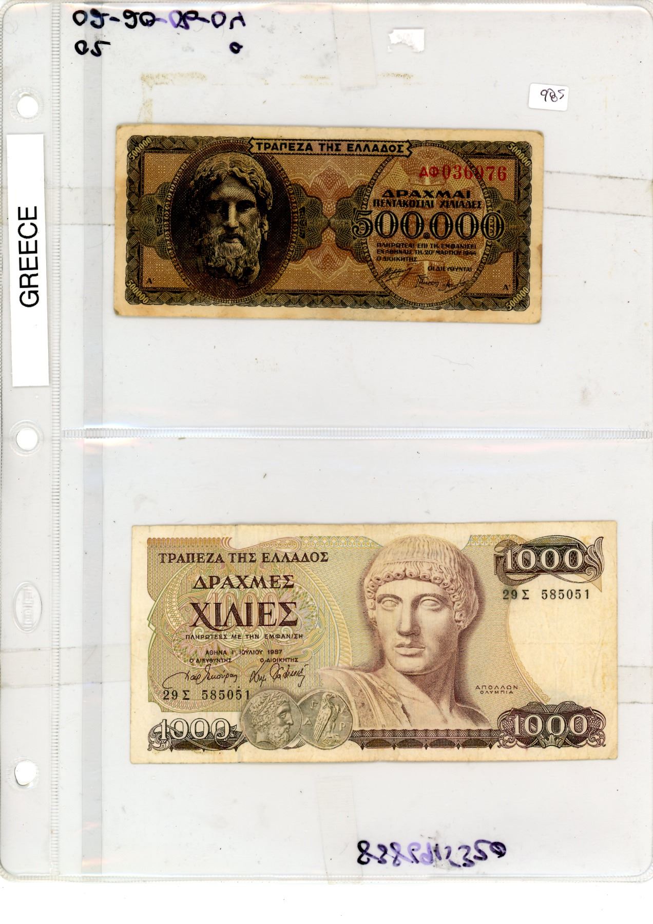 2 Greek Bills - 1944 and 1987
