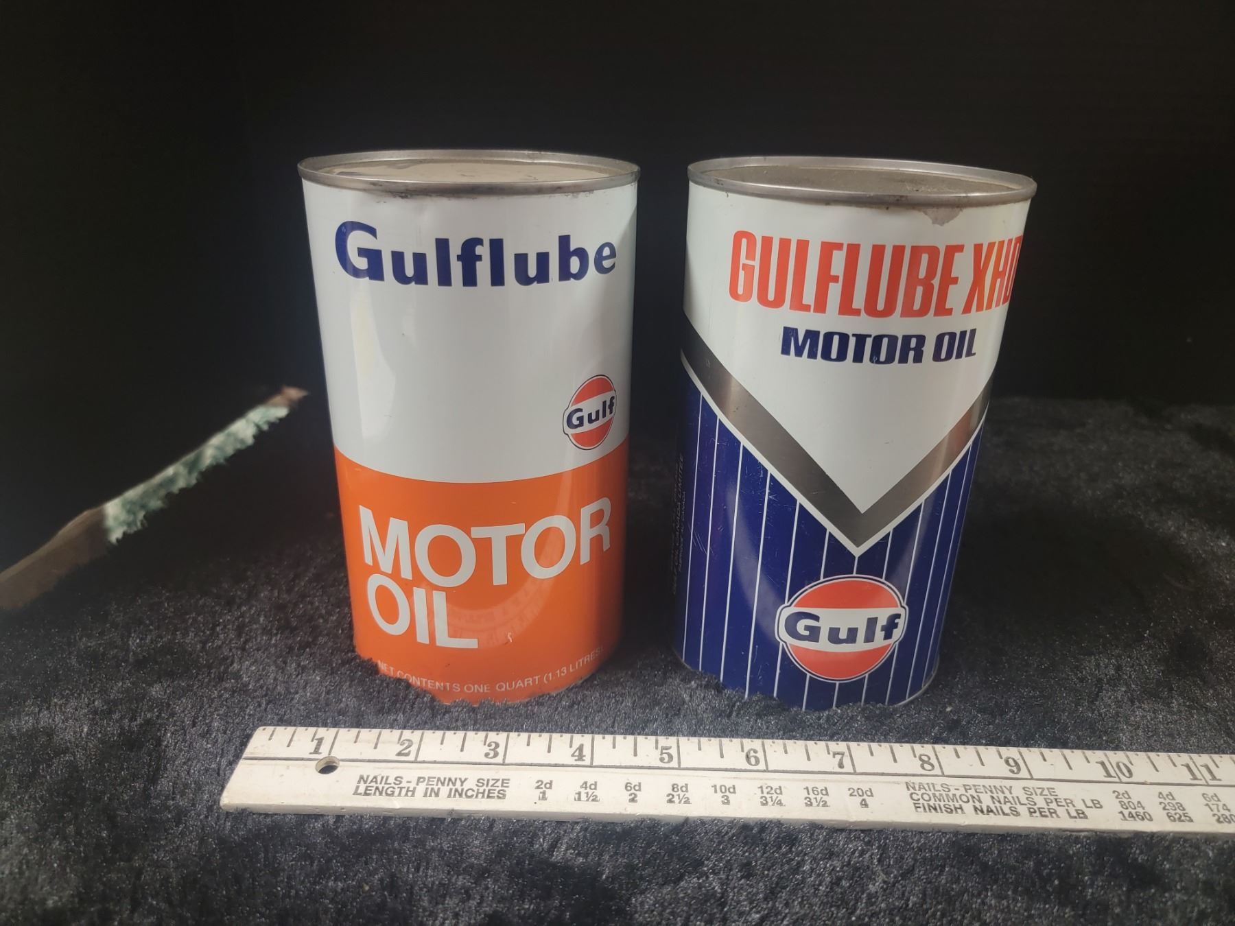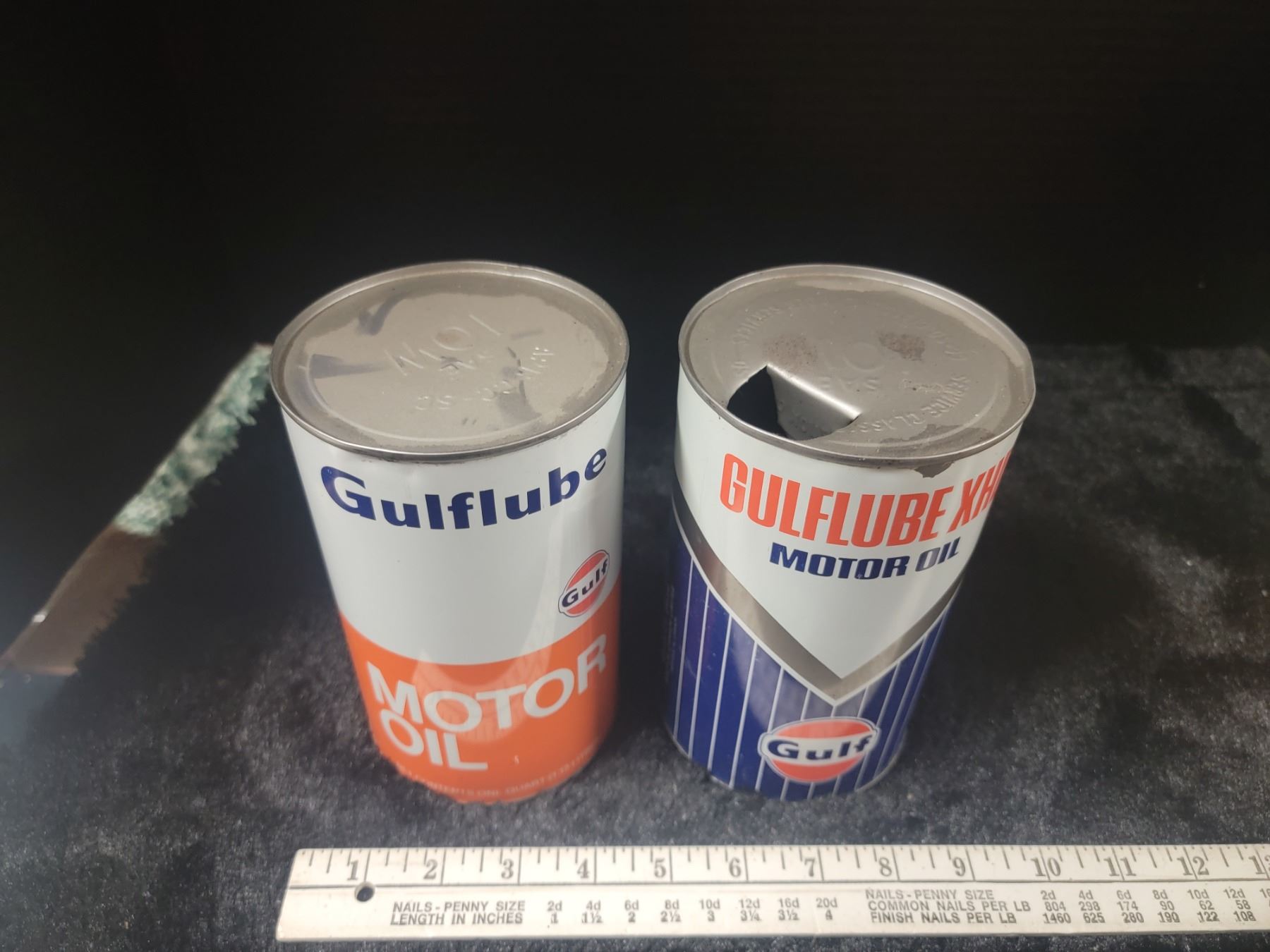 2 Gulf motor oil tins 1 qt.