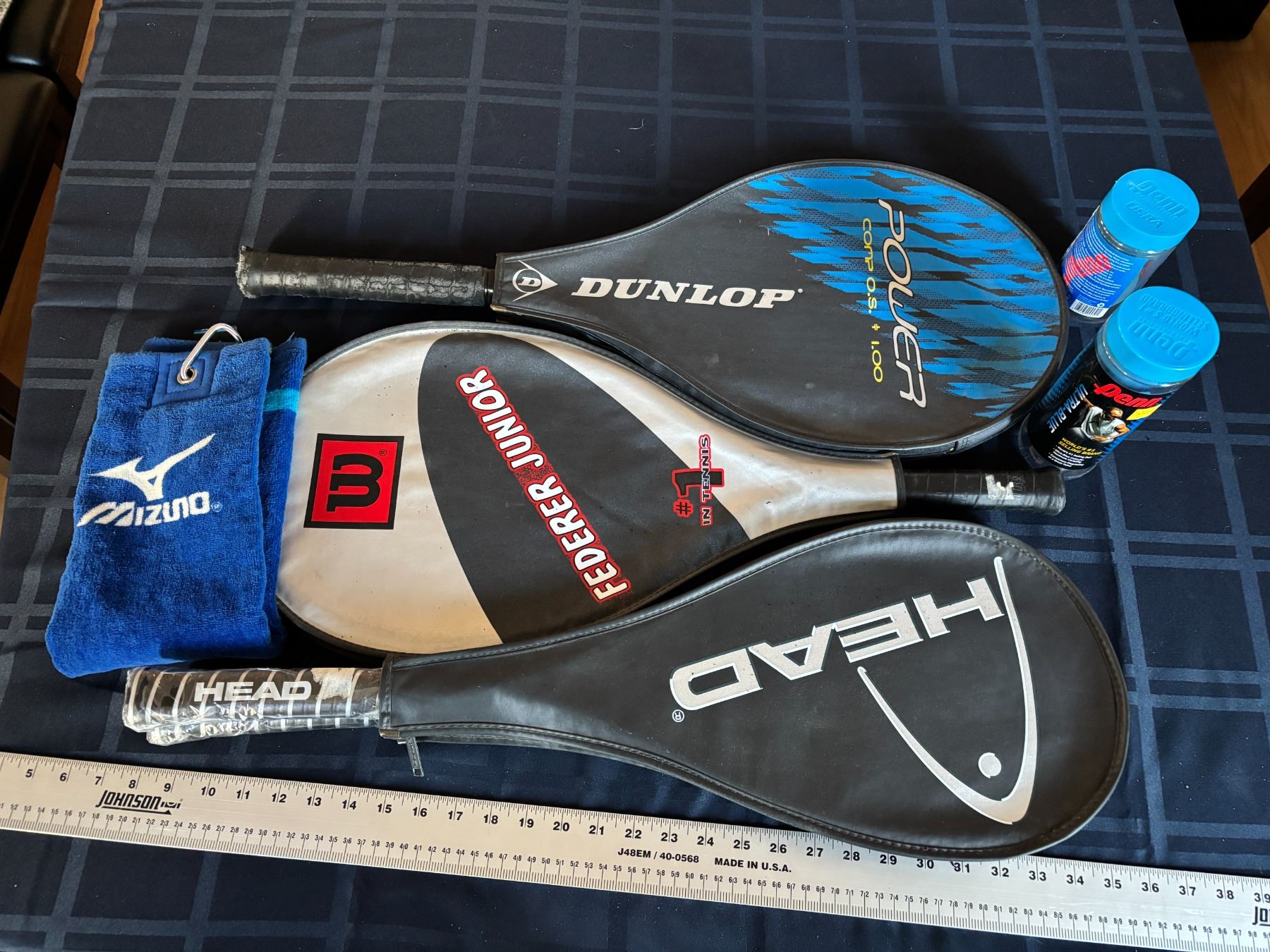 2 Head Squash Rackets (Brand New); 2 Tennis Rackets; 5 Penn Racquetballs; 1 Golf Towel;