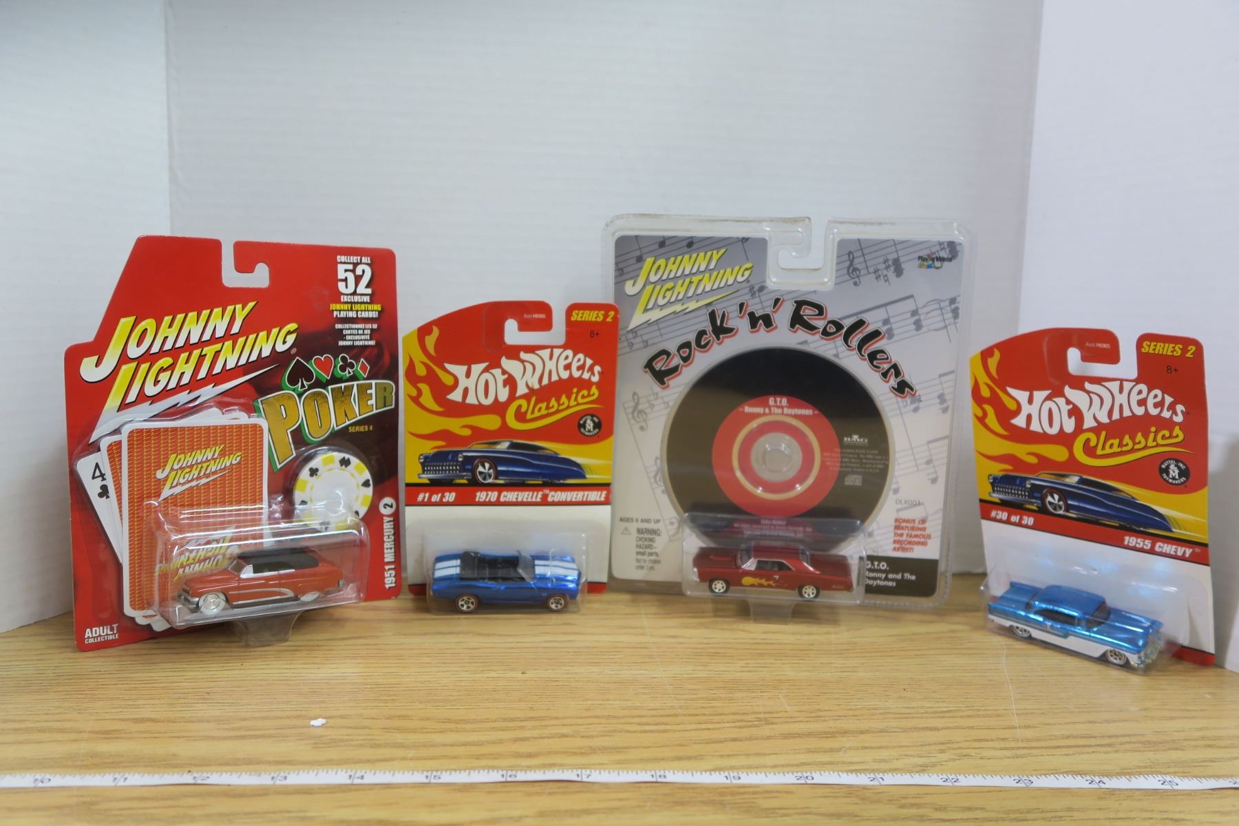 2 Hot Wheels Classics and 2 Johnny Lightning