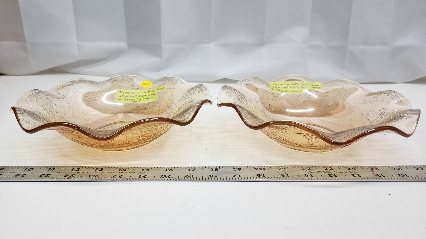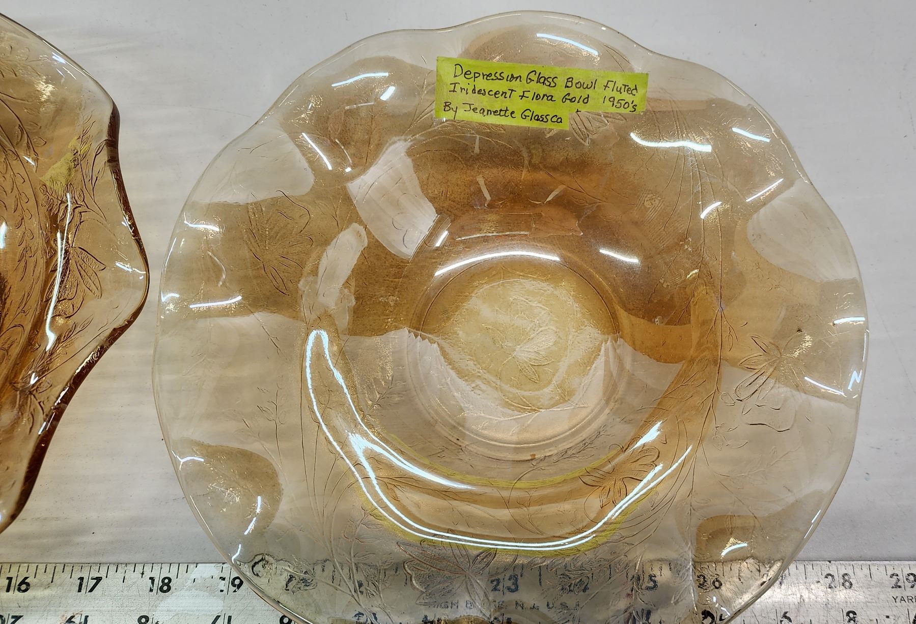 2 Iridencent Carnival Glass Bowls - Jeanette Glass Fluted 1950's - 10"