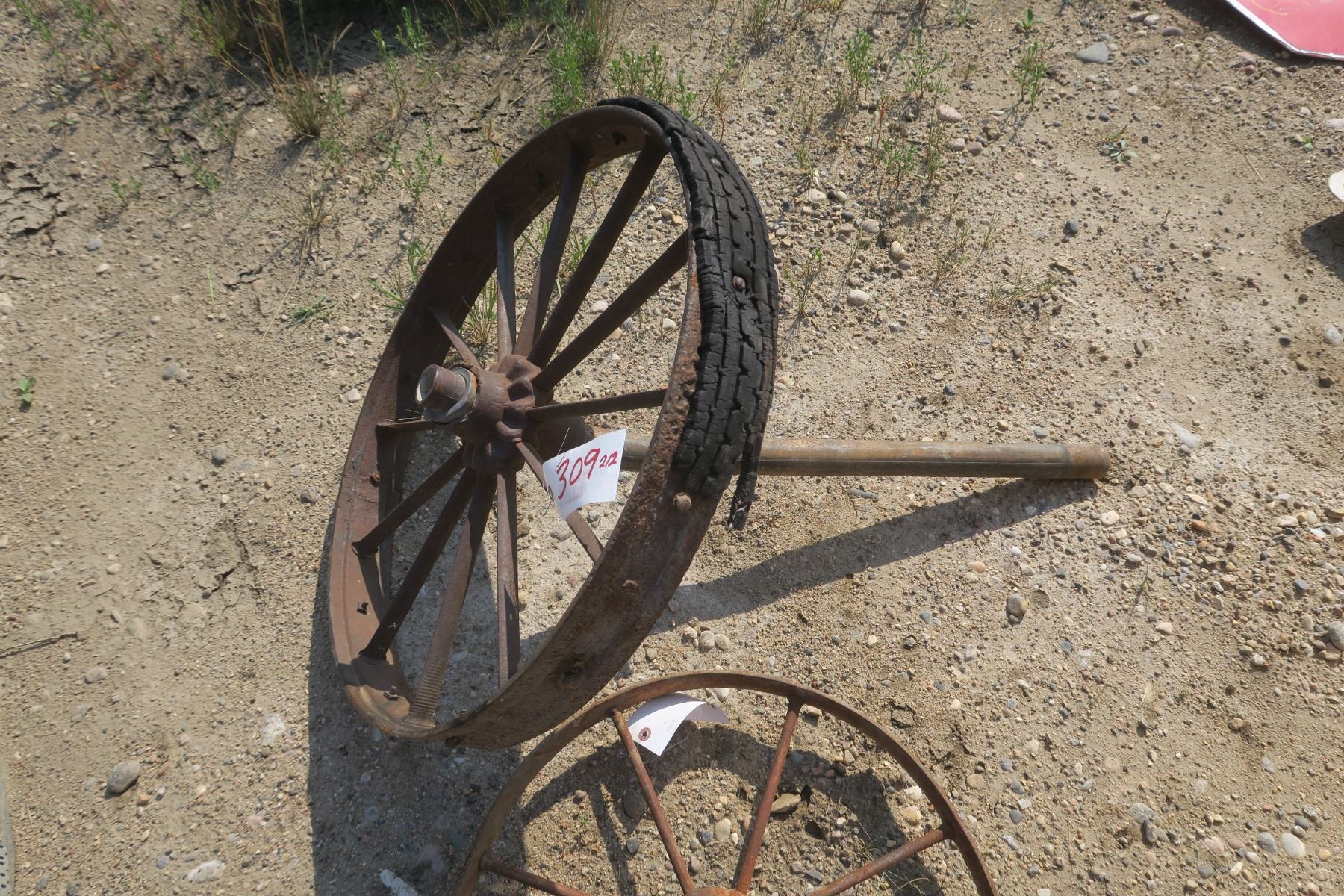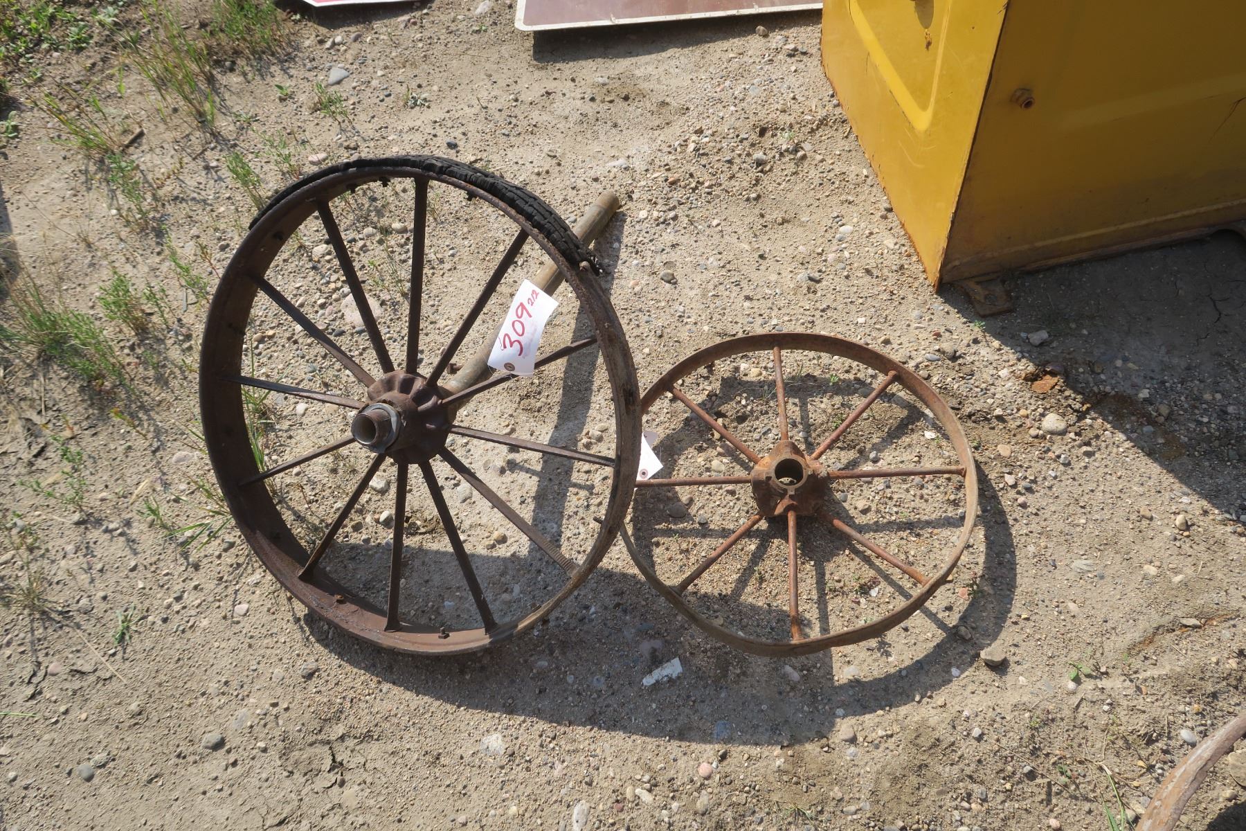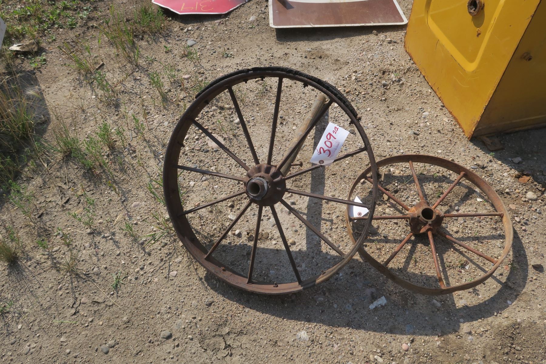 2 Iron Implement Wheels - 25" & 20" Across