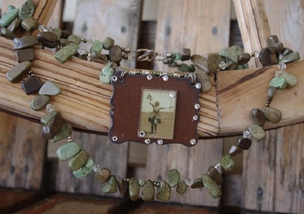 2 LAYER GREEN STONE CHUNKY NECLACE WITH VINTAGE PENDANT/High quality chunky necklace Vintage cowgirl on pendant Double strand
