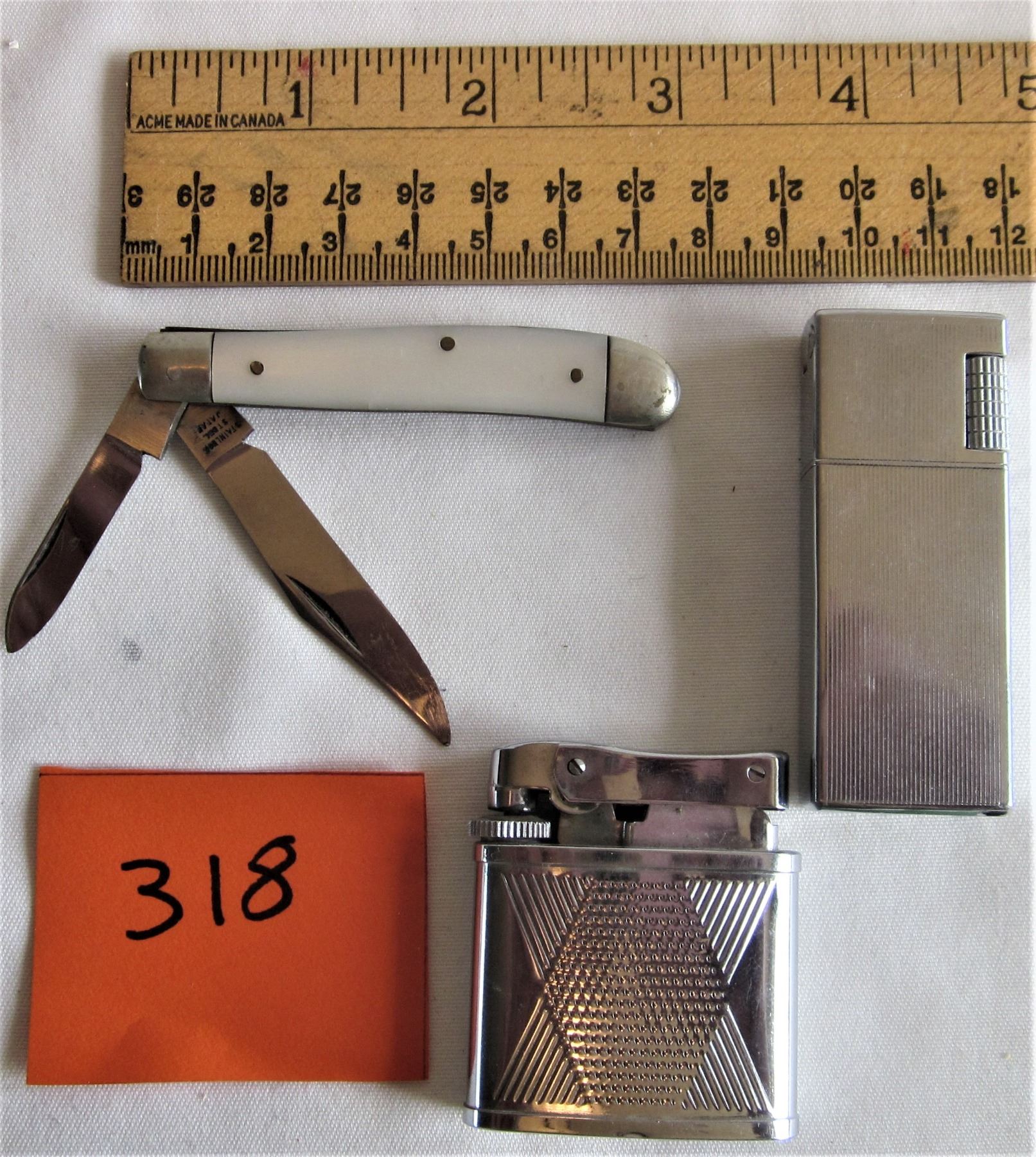 2 LIGHTERS + POCKET KNIFE (STAINLESS - JAPAN)