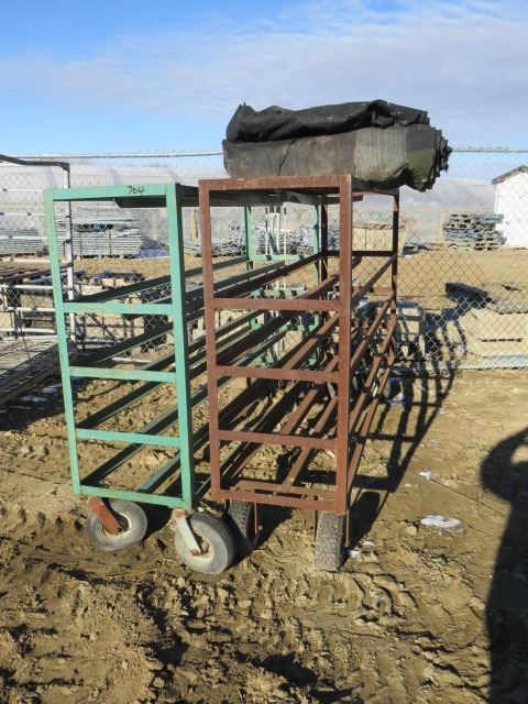 2 METAL RACKS C/W LARGE WHEELS 90"X20" (2 TIMES BID PRICE)
