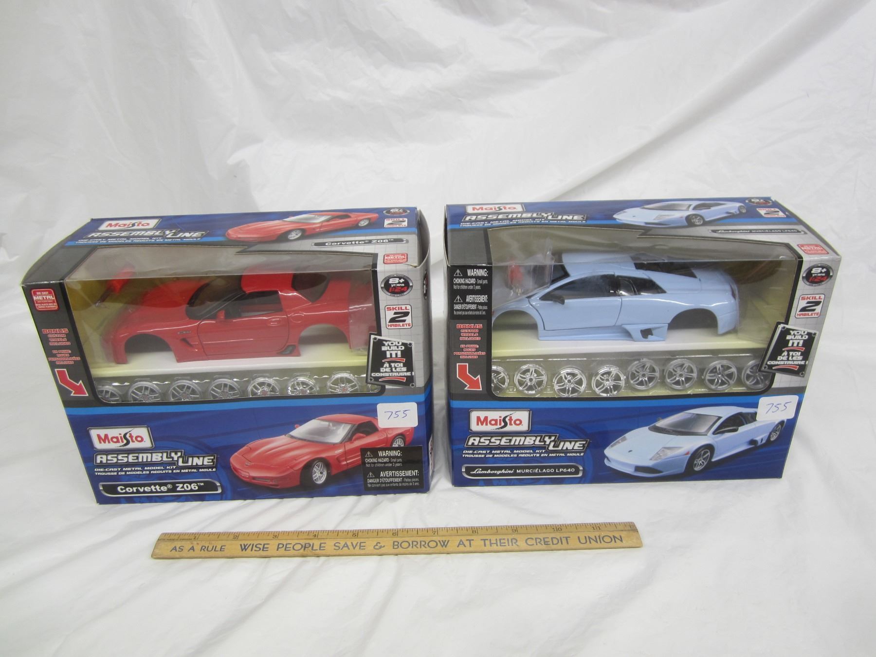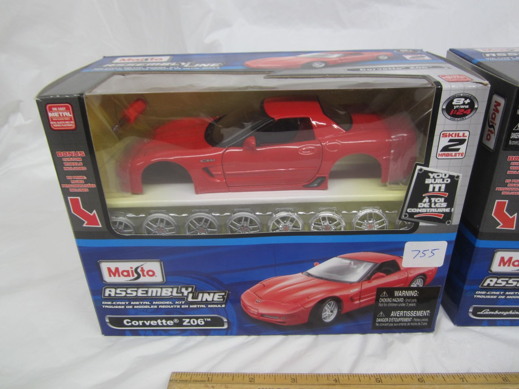 2 Maisto Assembly Line Car Kits Corvette Z06, Lamborghini Murcielago LPG40