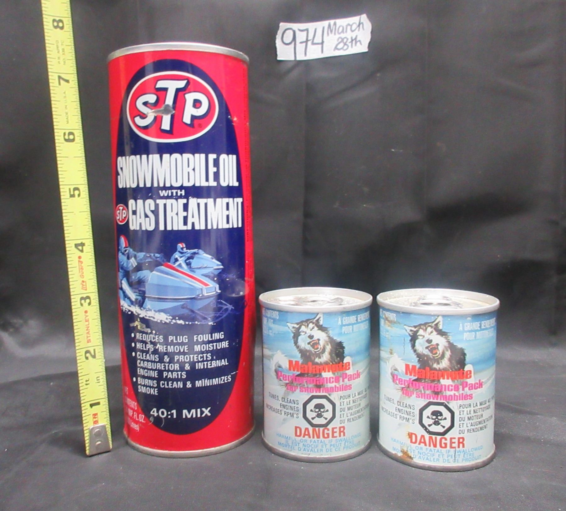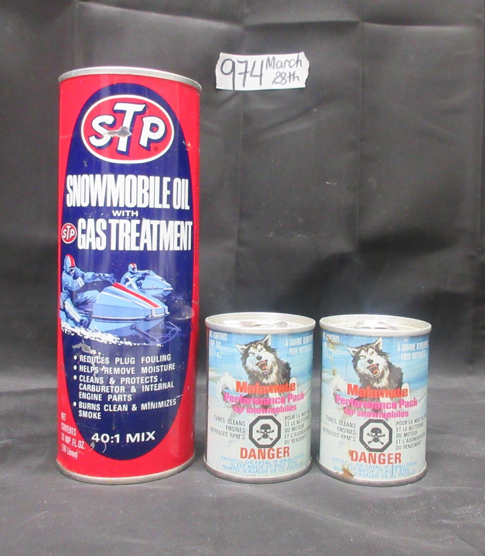 2 Malamute Additive tins and STP Snowmobile Oil tins (all full)