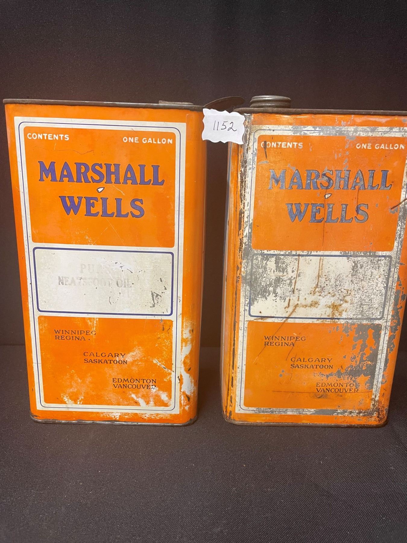 (2) Marshall Wells 1 Gallon Oil Cans