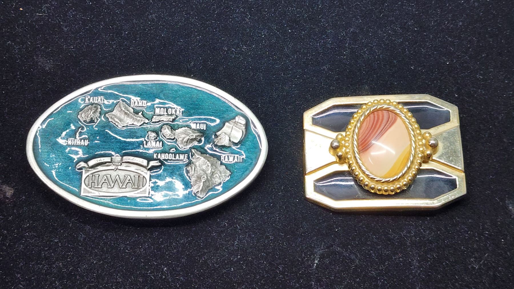 2 Men’s Belt Buckles, 1 Wonderstone, 1 Hawaii 1984 Arroyo Grande Buckle Co.