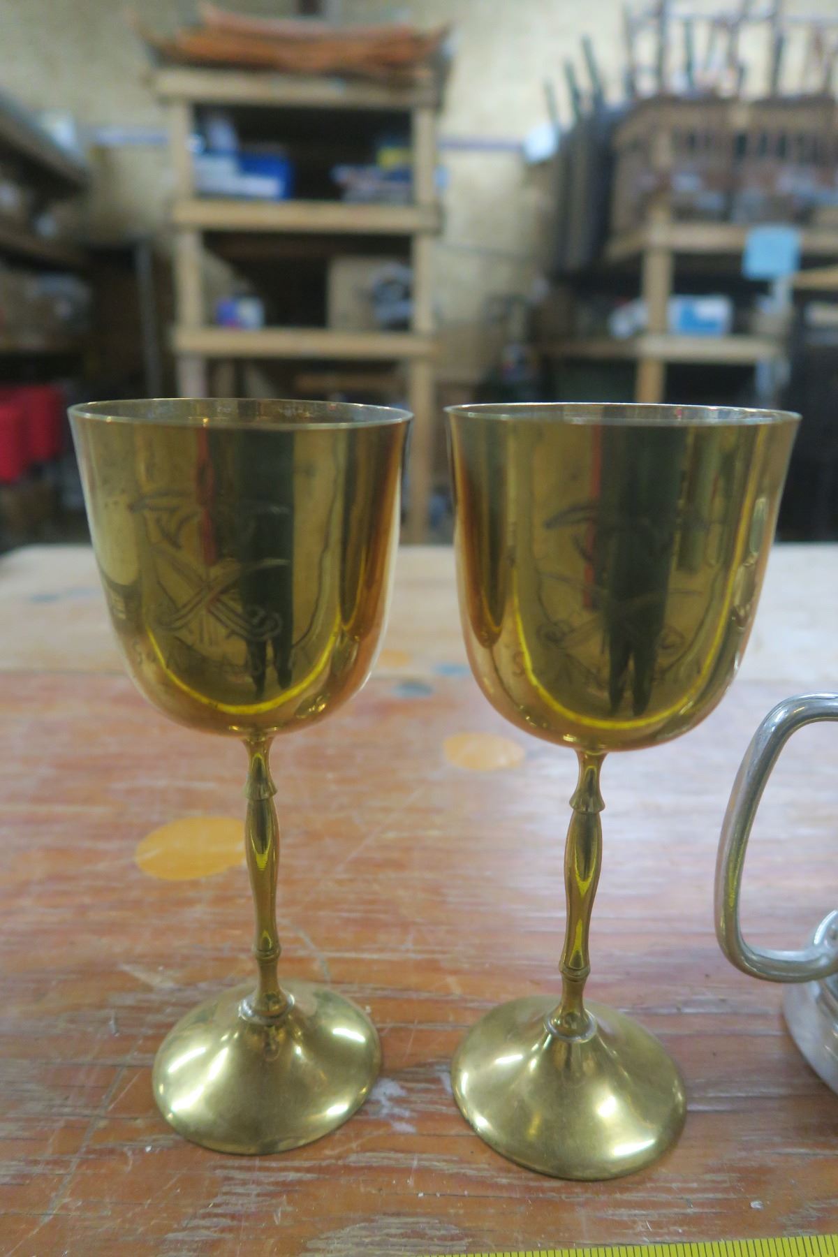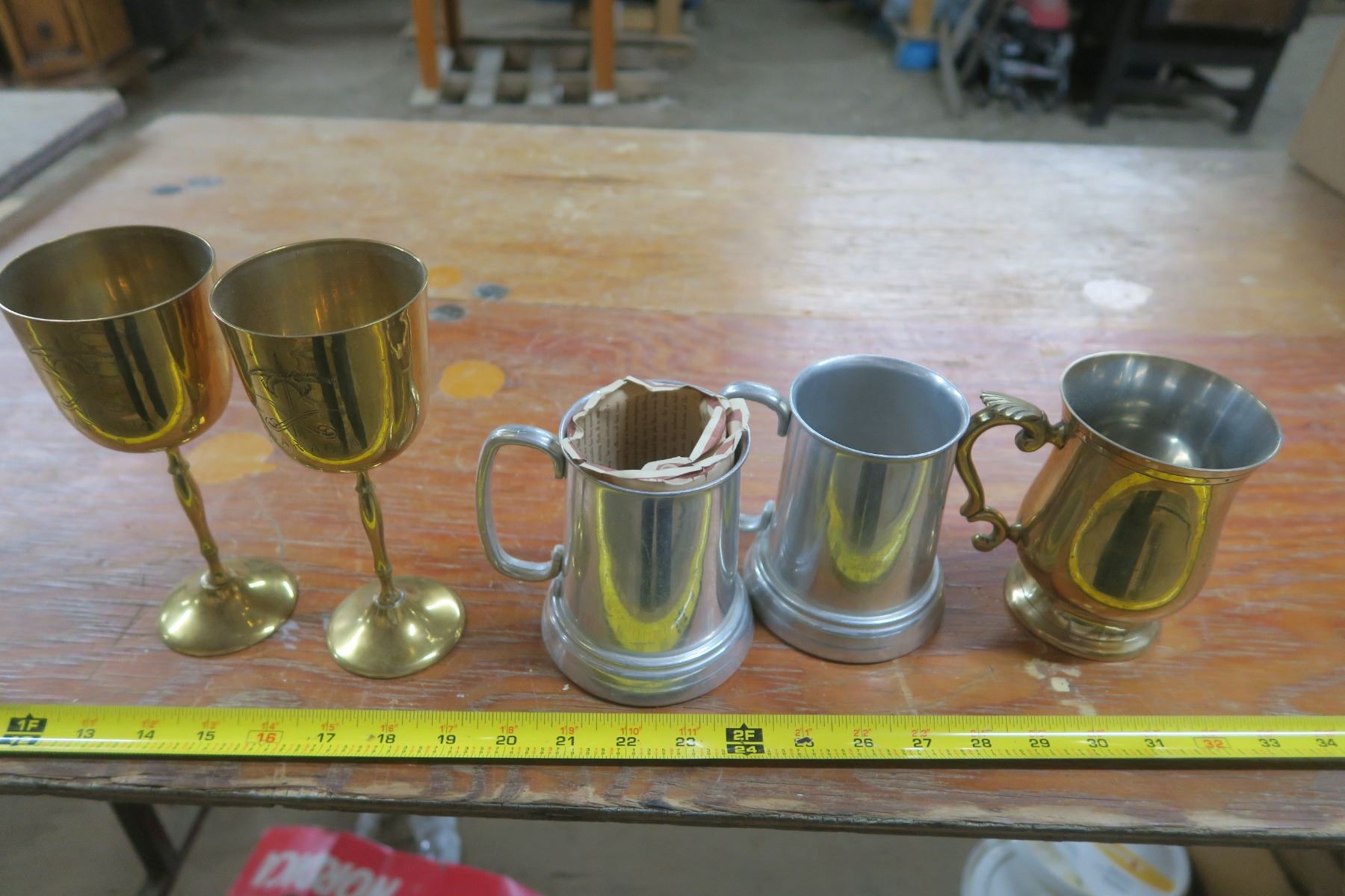 2 Metal Wine Glasses and 3 Metal Beer Mugs