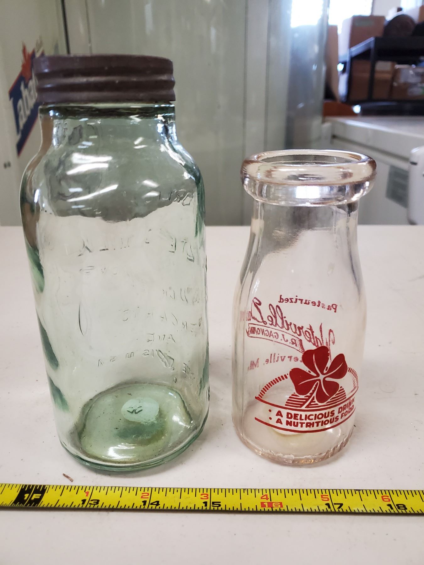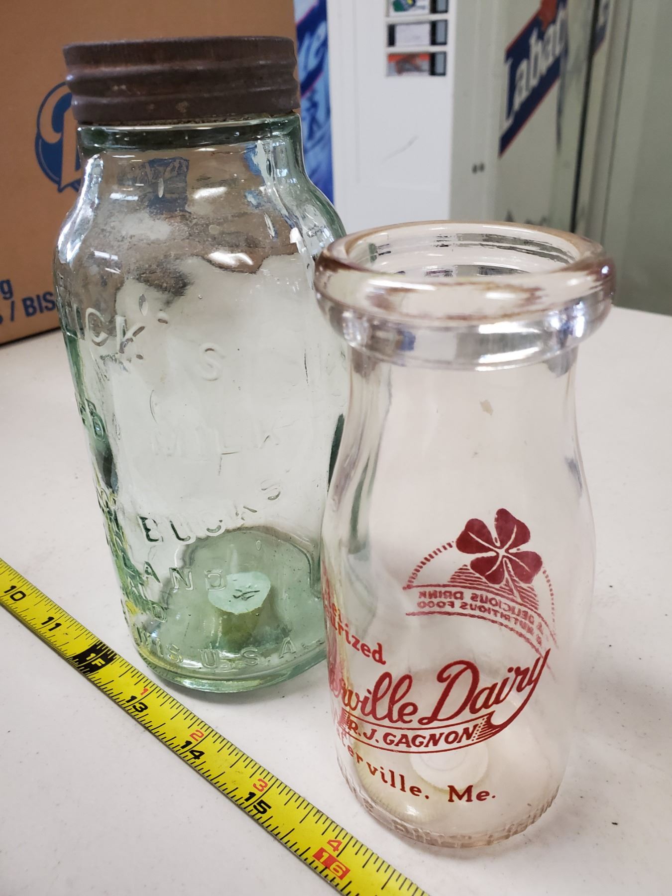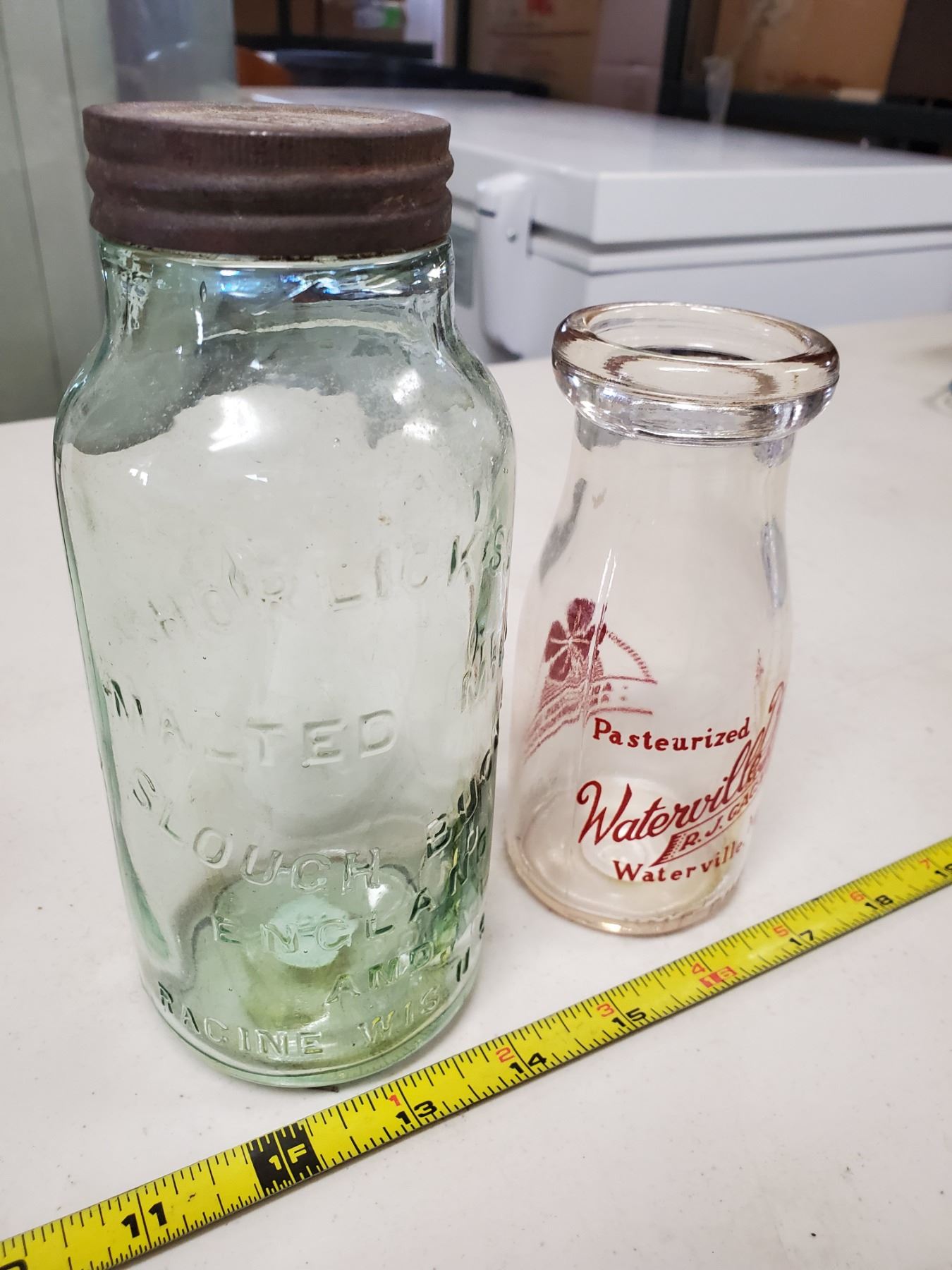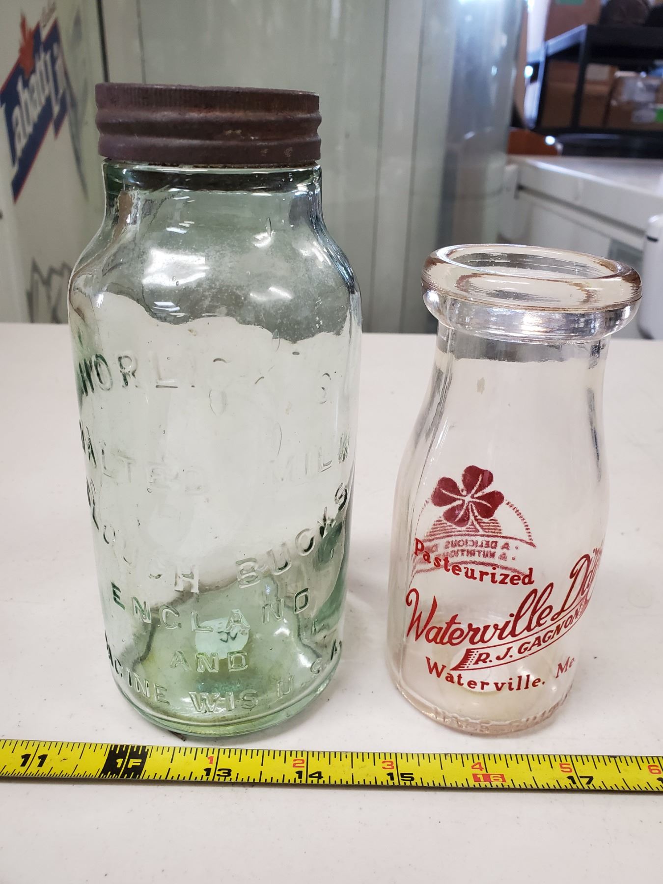 2 Milk bottles, 1/2 pint Waterville dairy, Horlick's malted milk - England