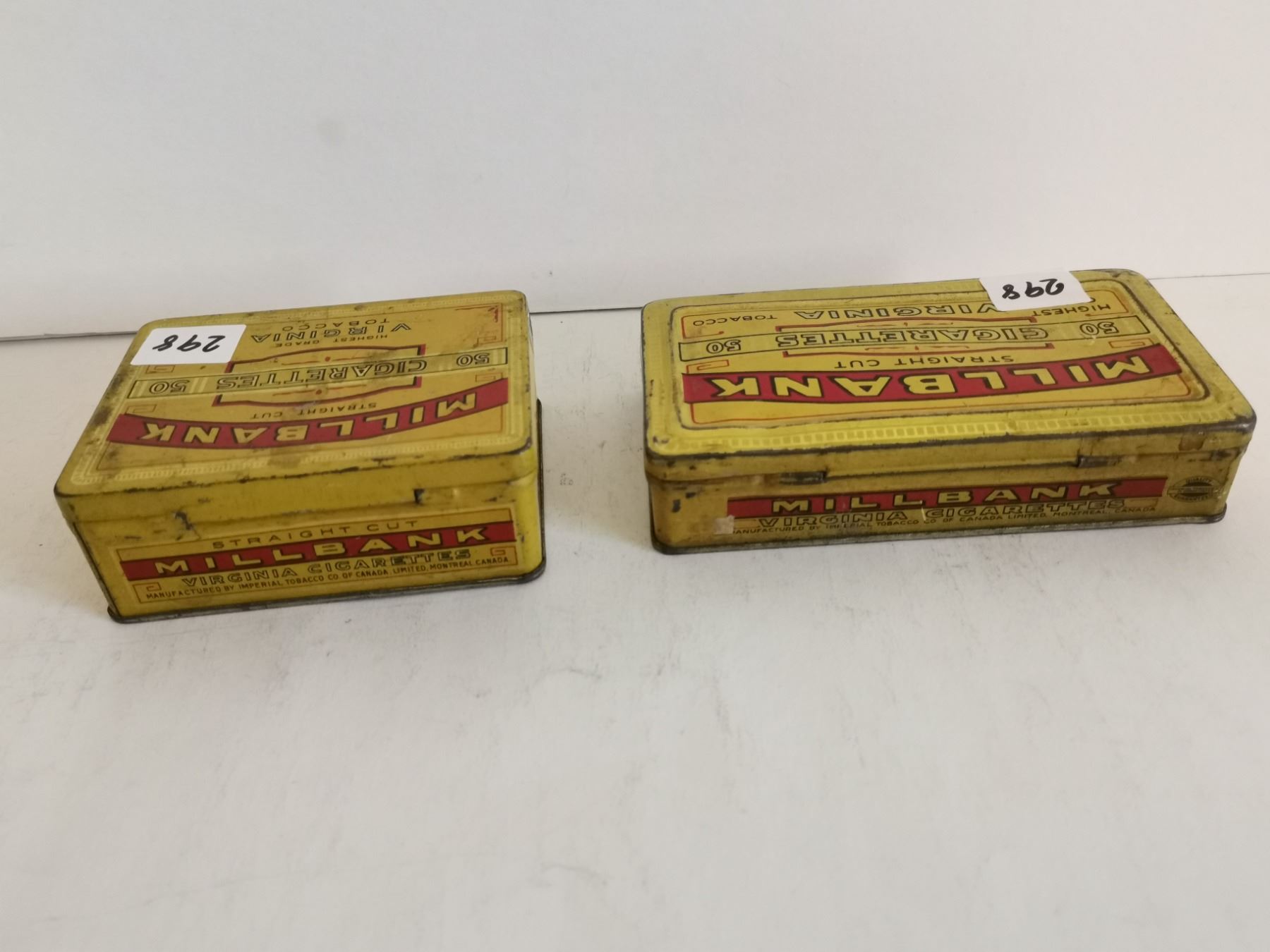 2 Millbank tobacco tins 5.5" and 4"