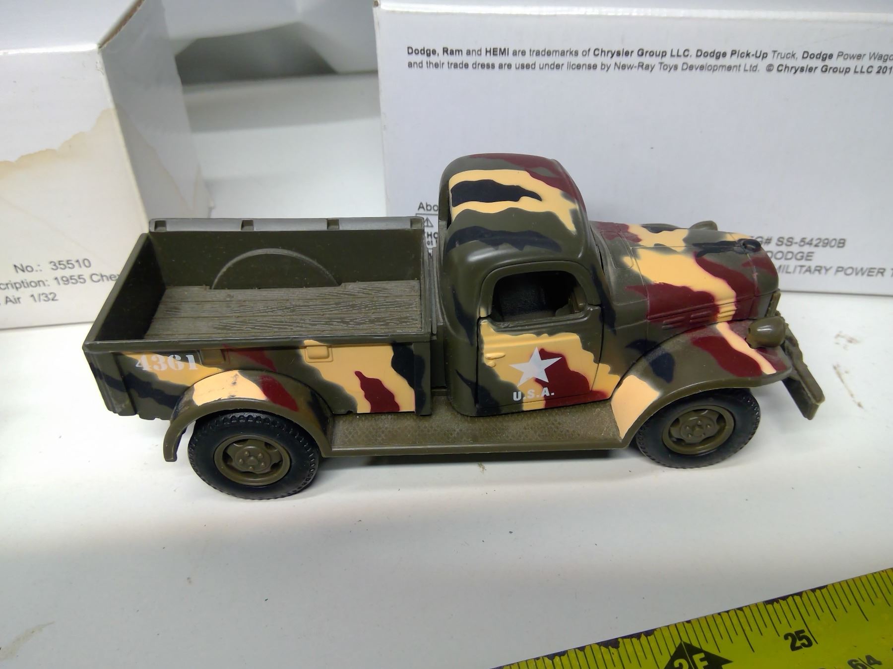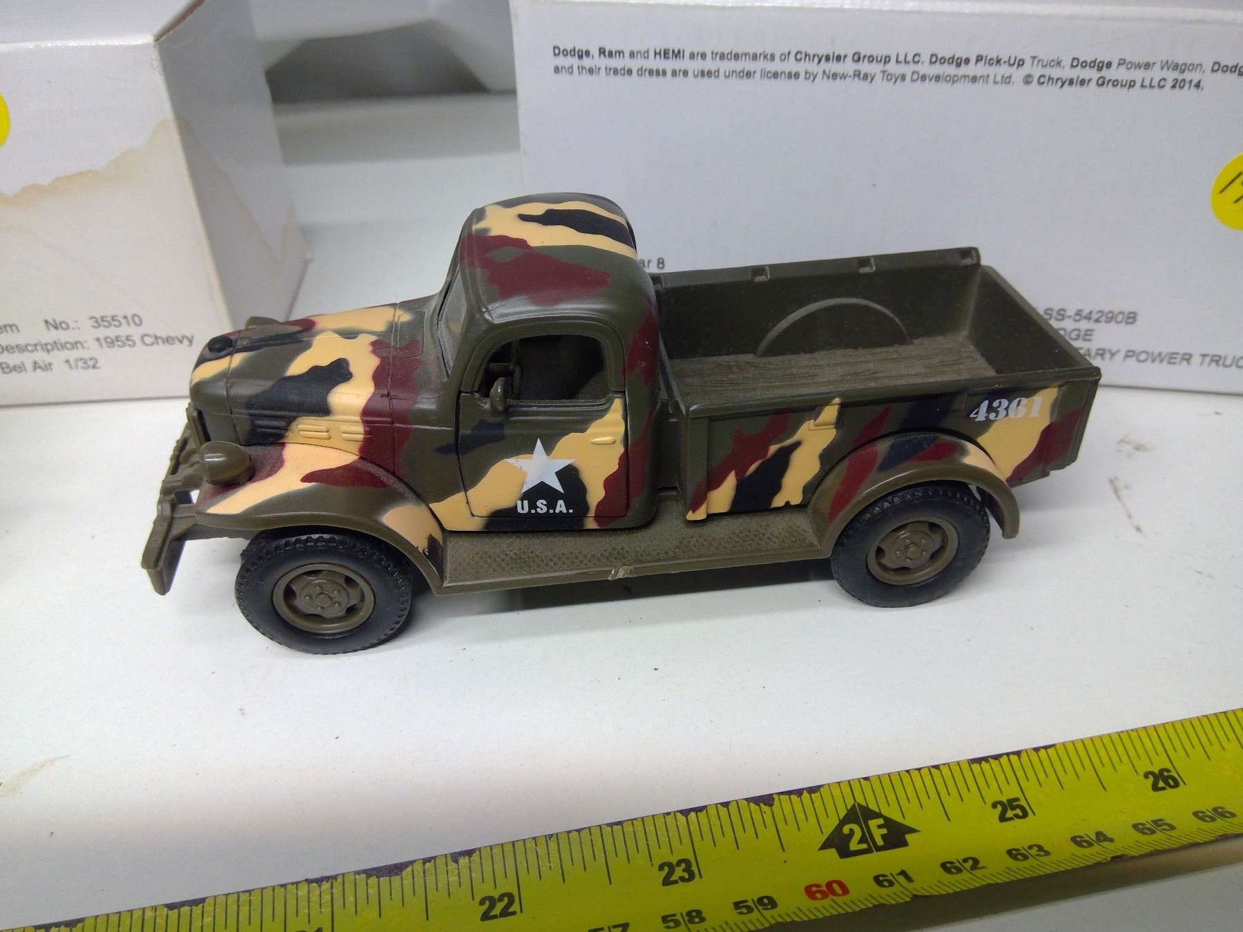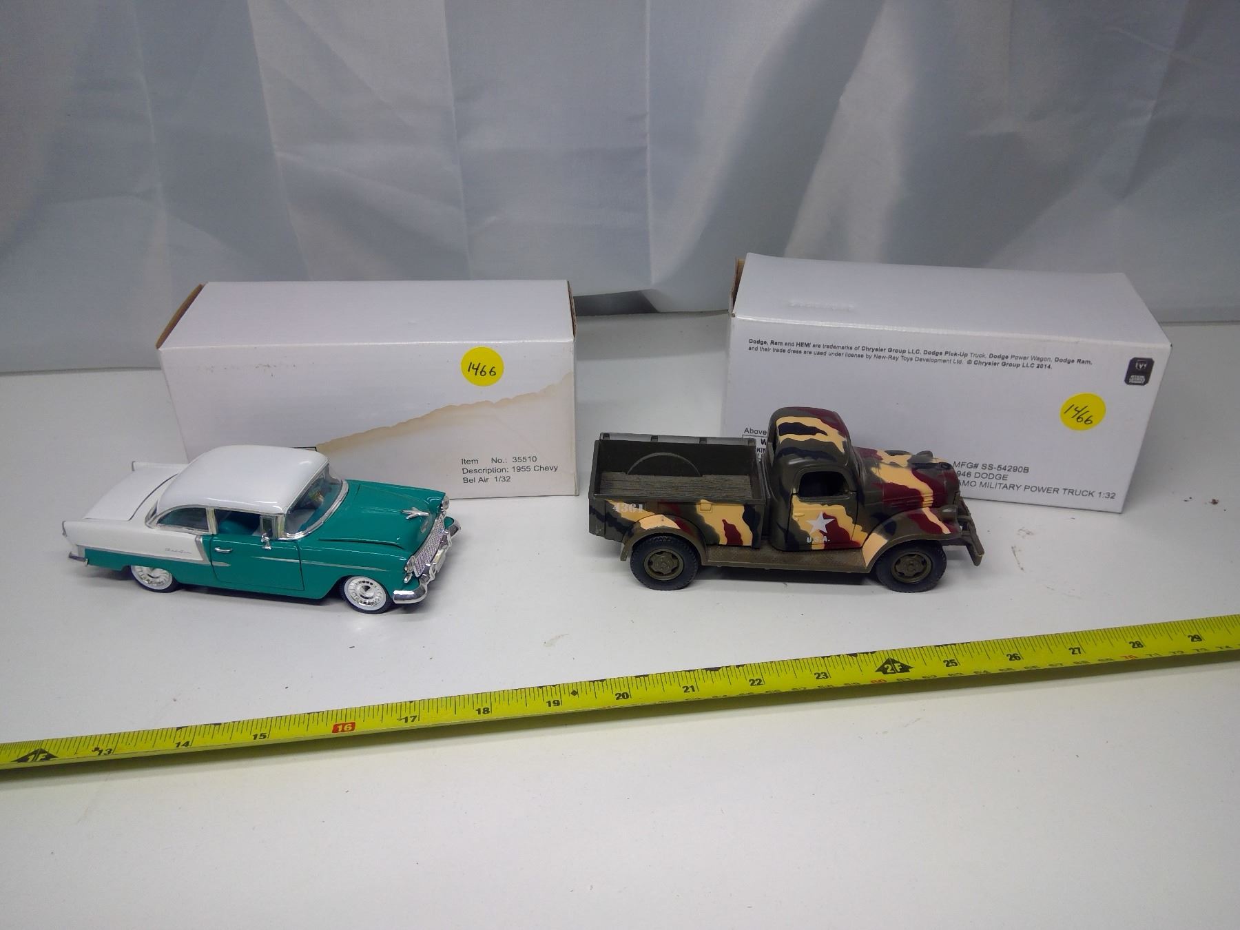 2 Model Vehicles - 1946 Dodge Camo Military Power Truck (1:32) and 1955 Chevy Bel Air (1:32)