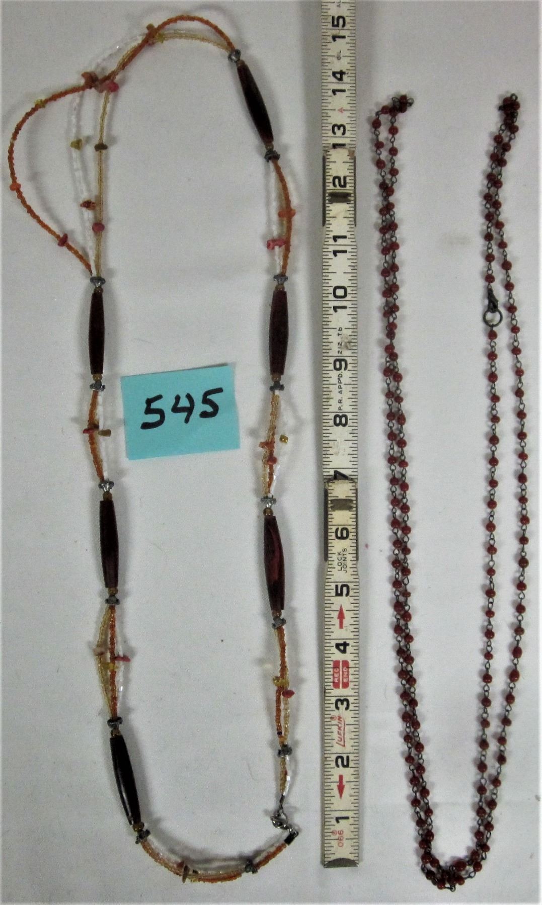 2 Necklaces 28" mini reddish beads 30" multi color beads