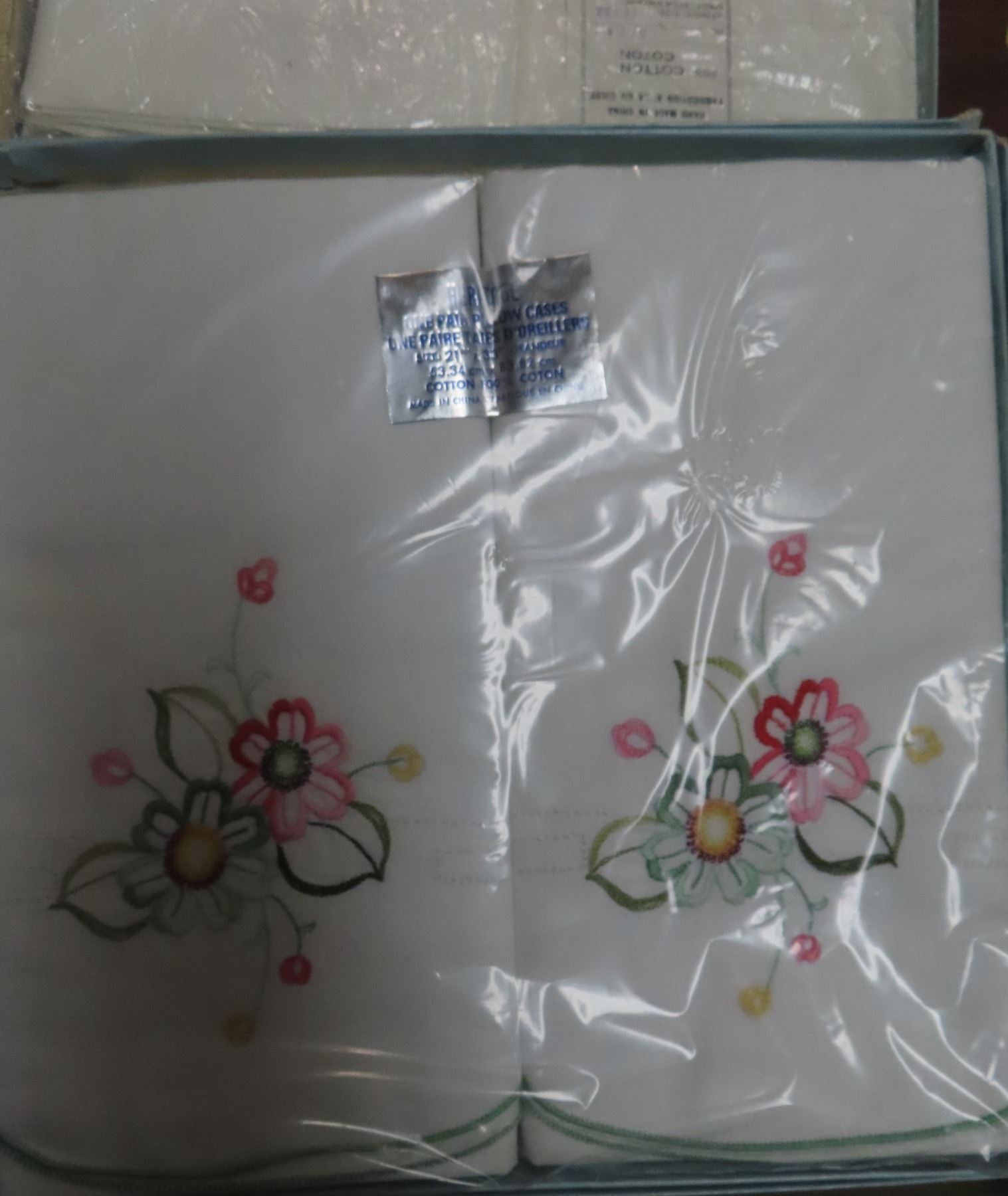 2- Nos- pillow cases ( wedding gift 1979 ) + vintage cloth