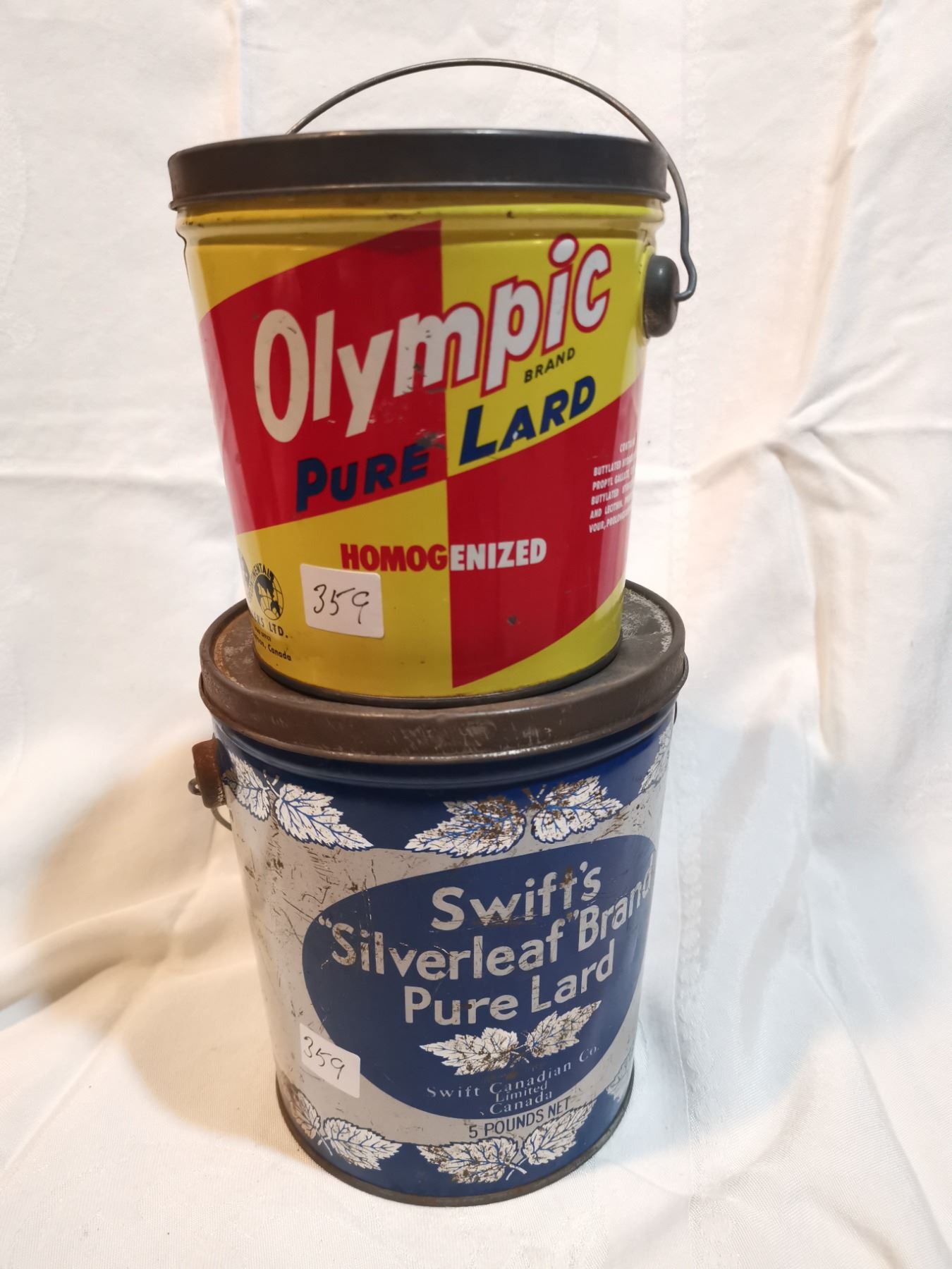 2 Olympic and Swifts Silverleaf brand lard tins (5lbs, 3lbs)