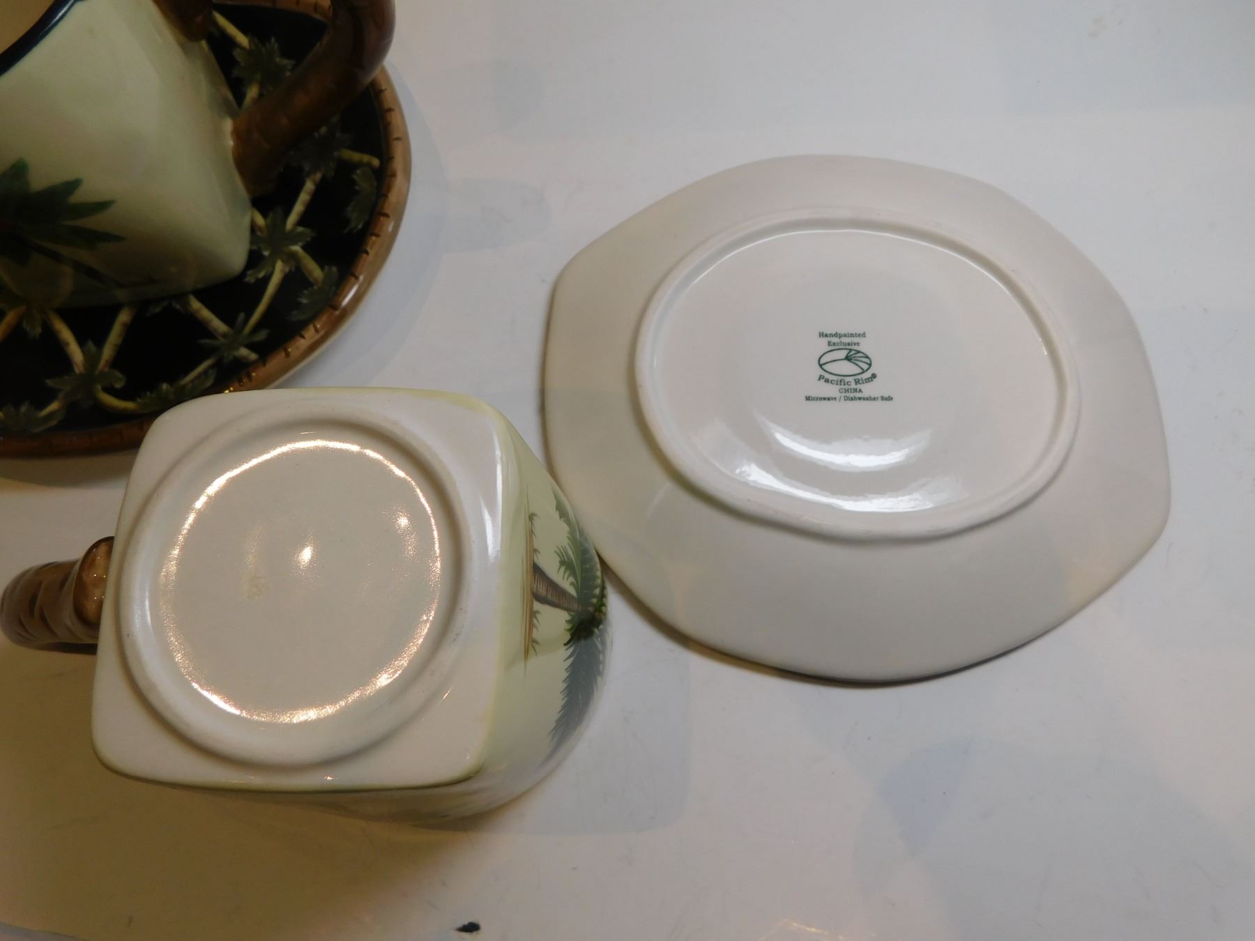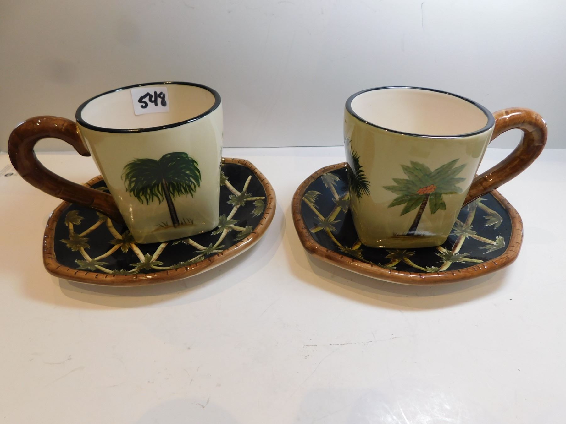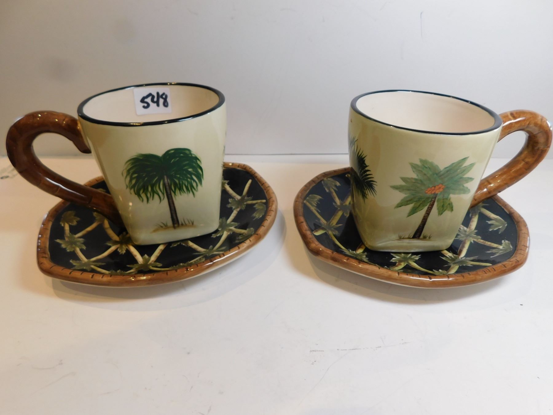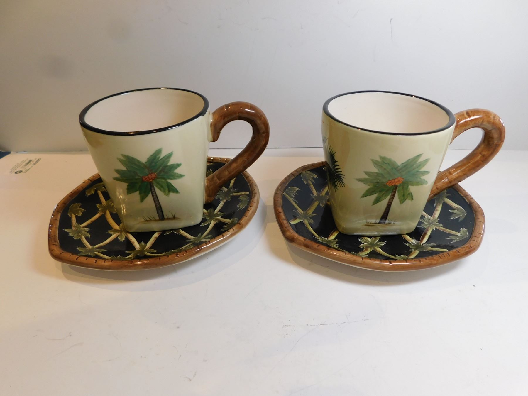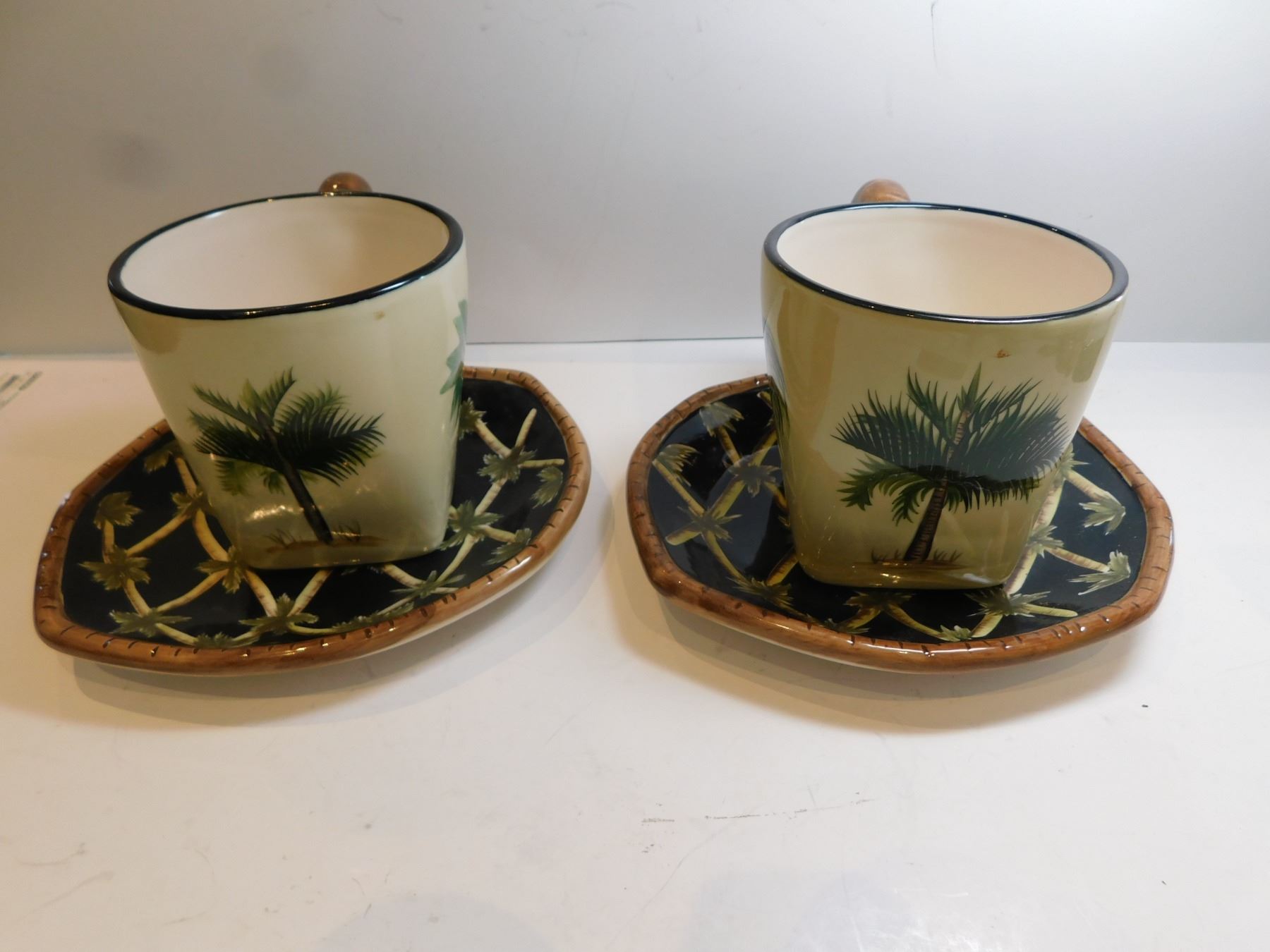 2-PACIFIC RIM CUP AND SAUCERS BLACK PALM TREE