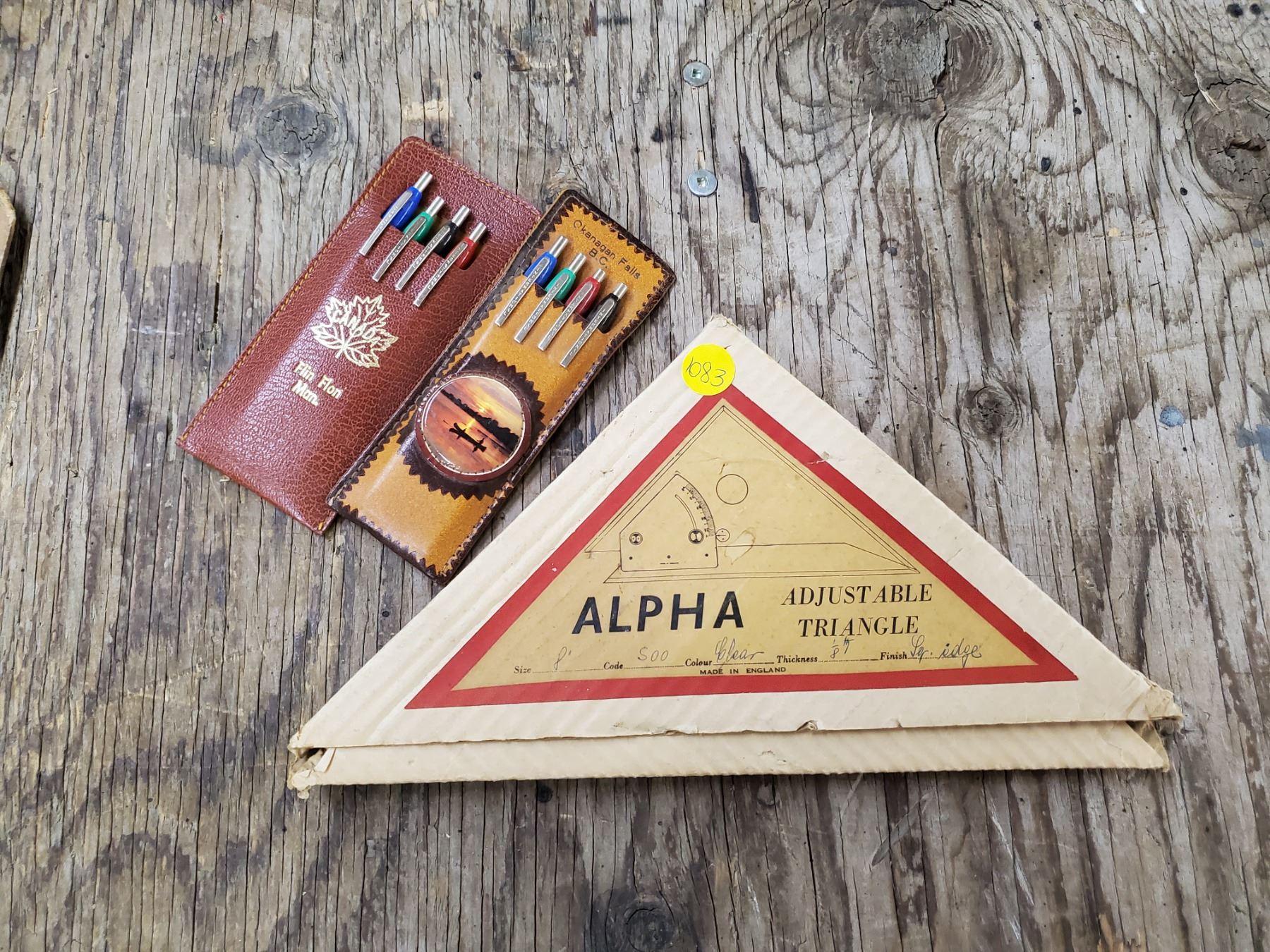 2 PEN SETS & ALPHA ADJUSTABLE TRIANGLE