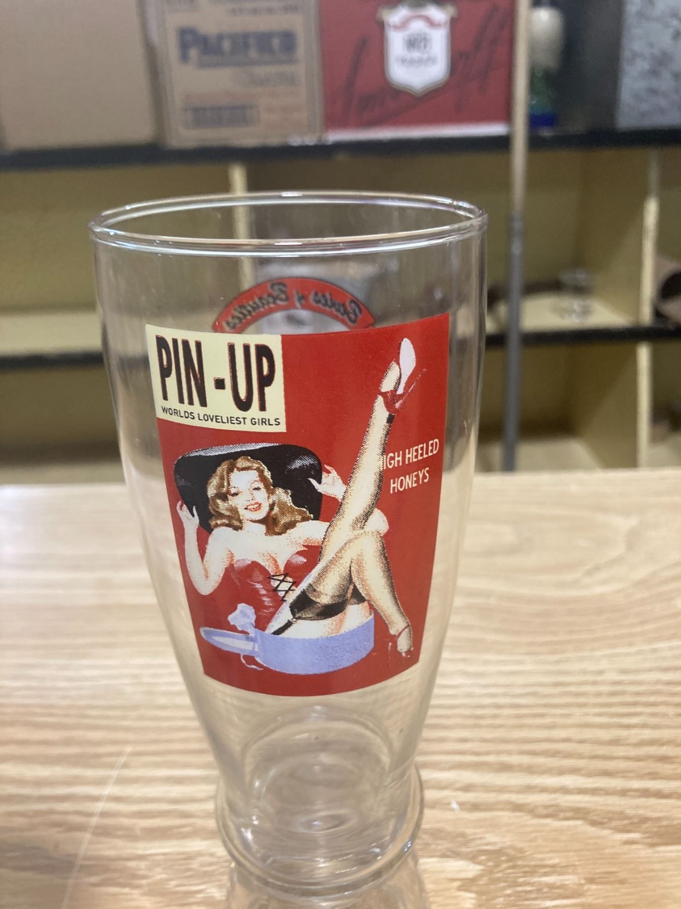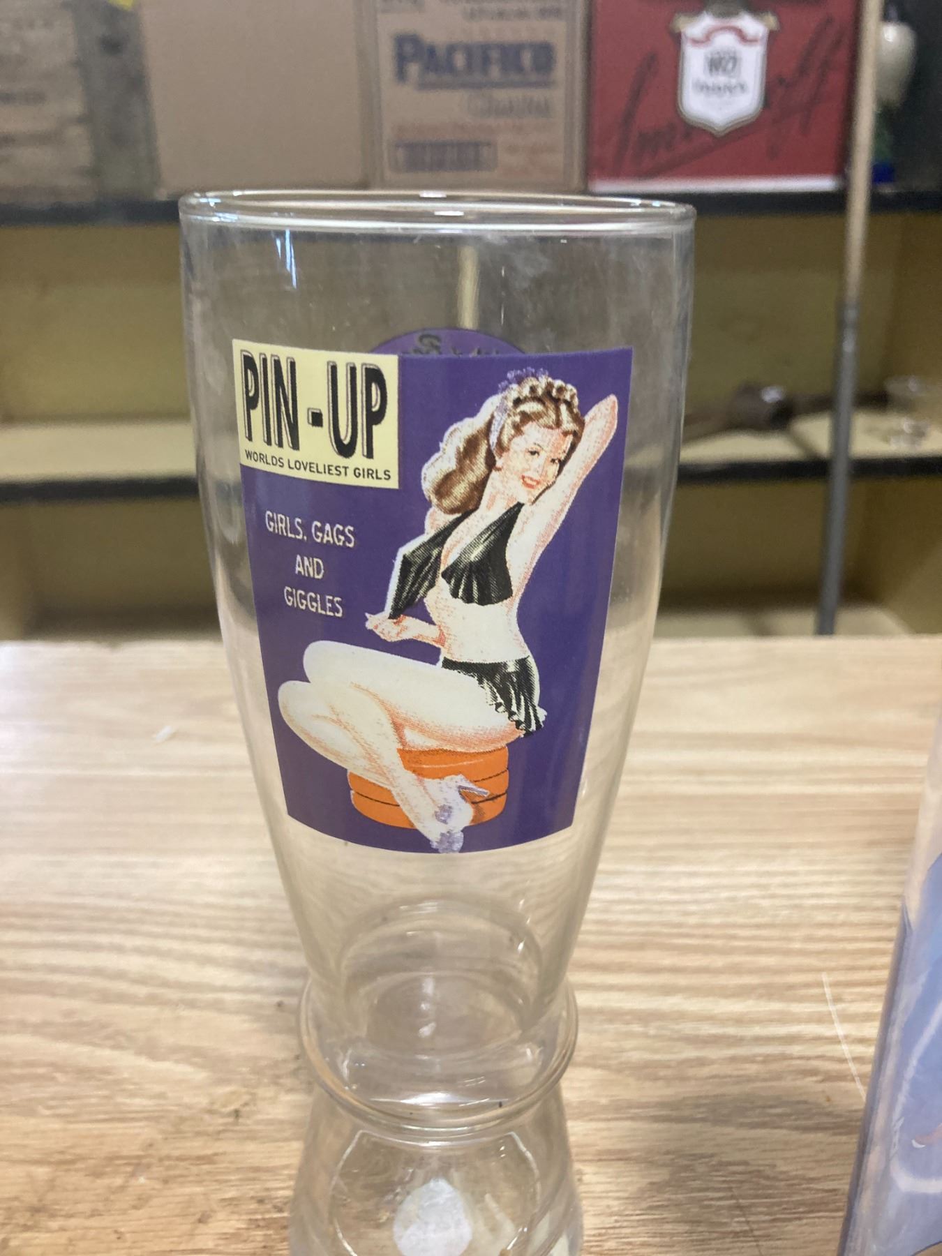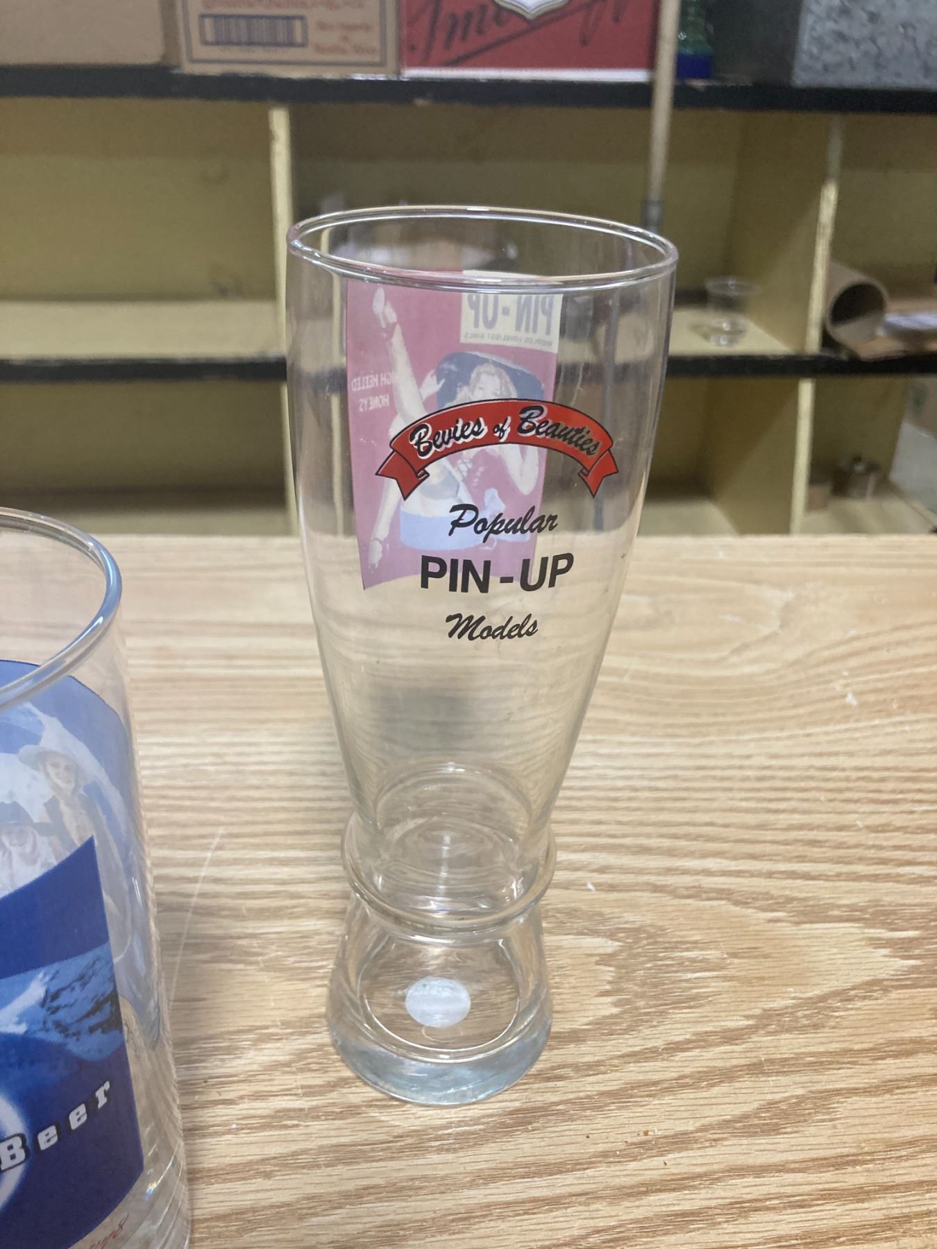 2 PIN-UP GLASSES + RAINIER R BEER GLASS