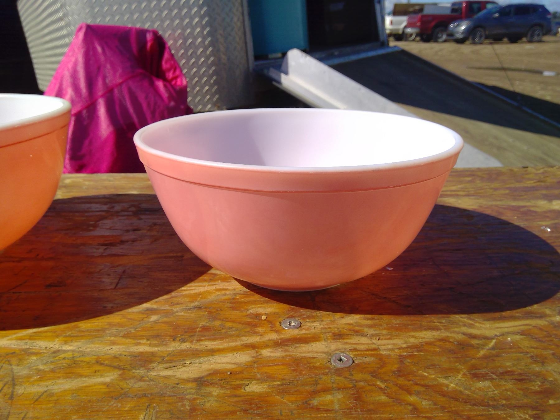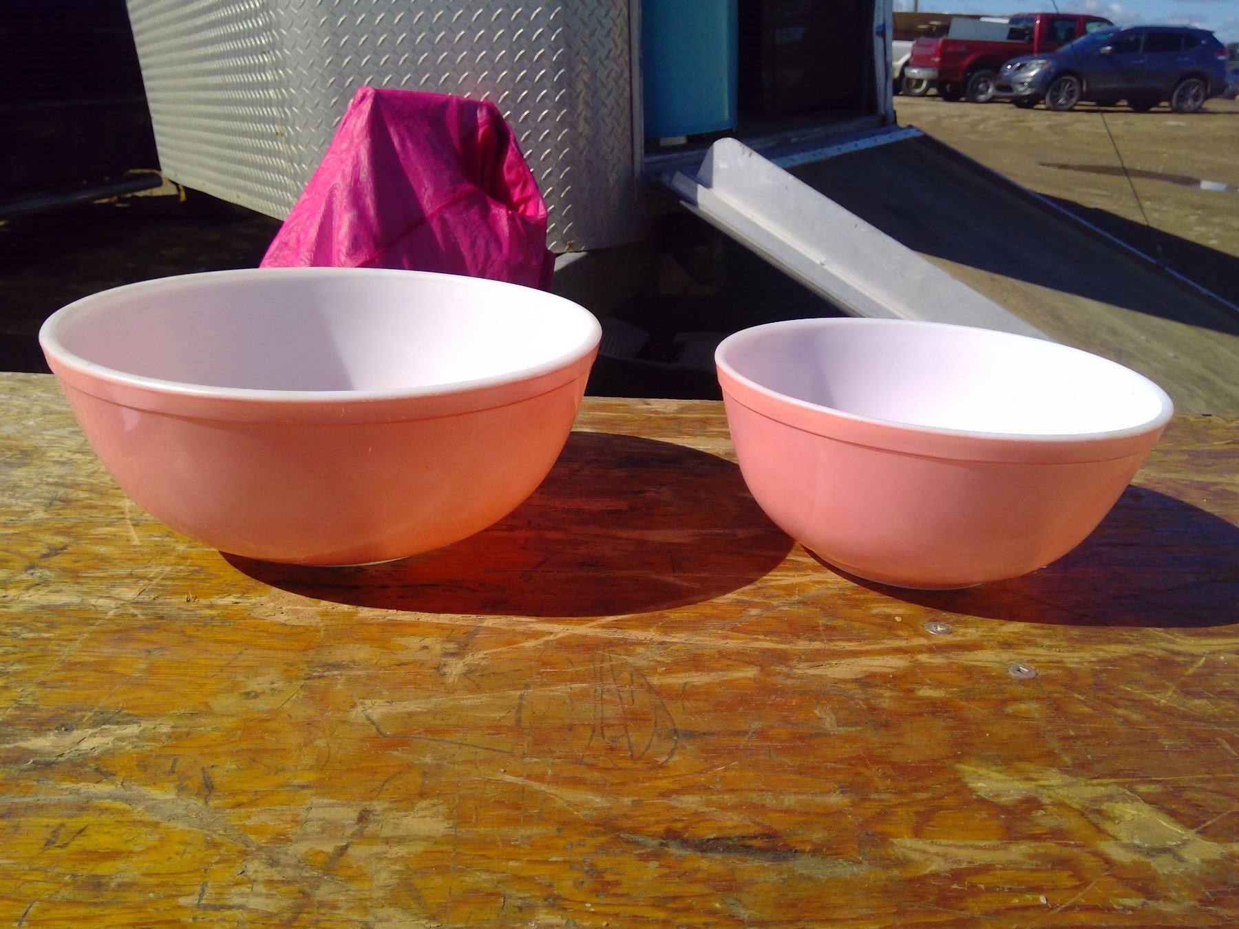 2 PINK DEPRESSION PYREX BOWLS