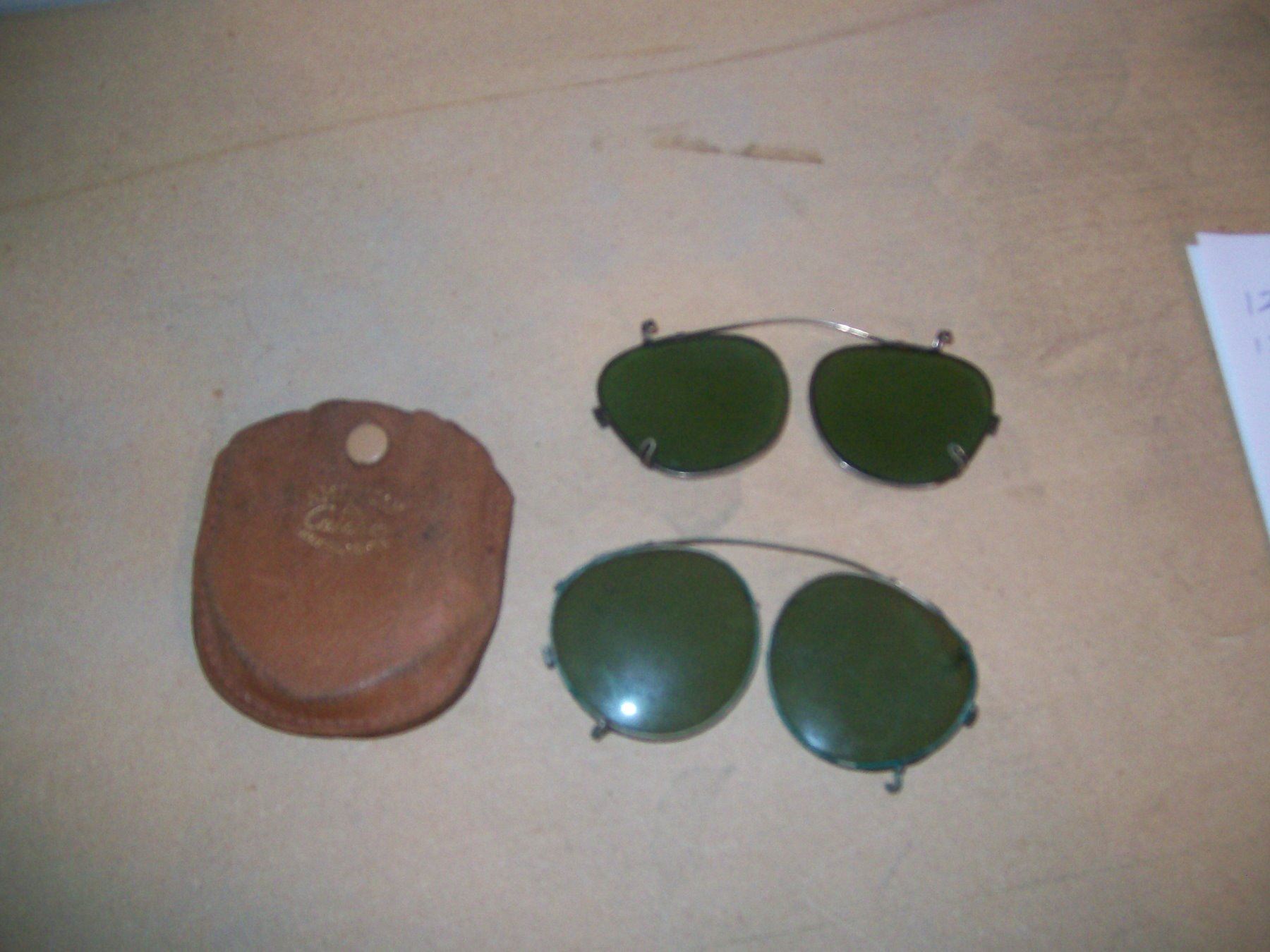 2 PR VINTAGE CLIP-ON SUNGLASSES W/CASE